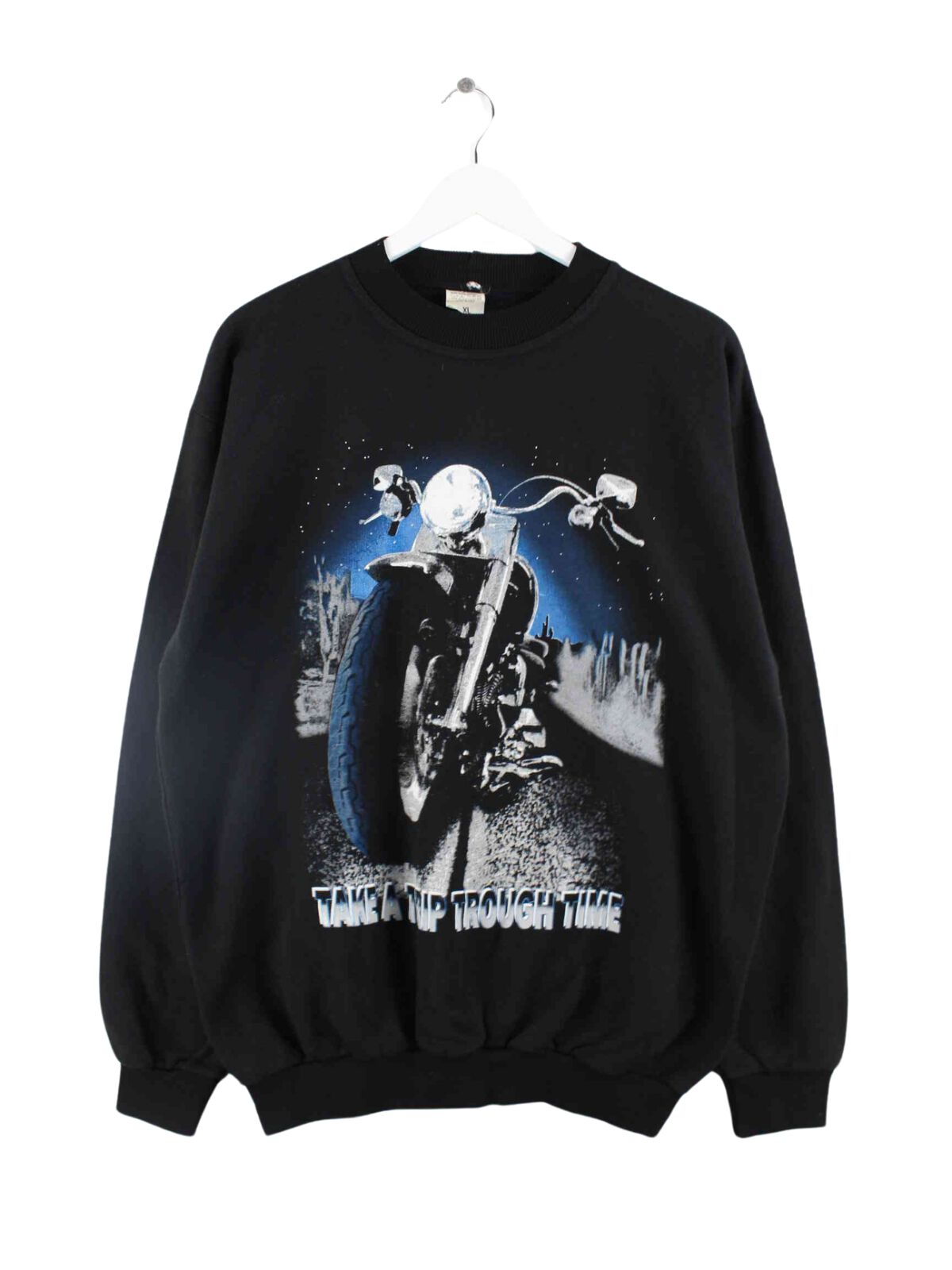 Vintage 90s Motorcycle Print Sweater Schwarz XL
