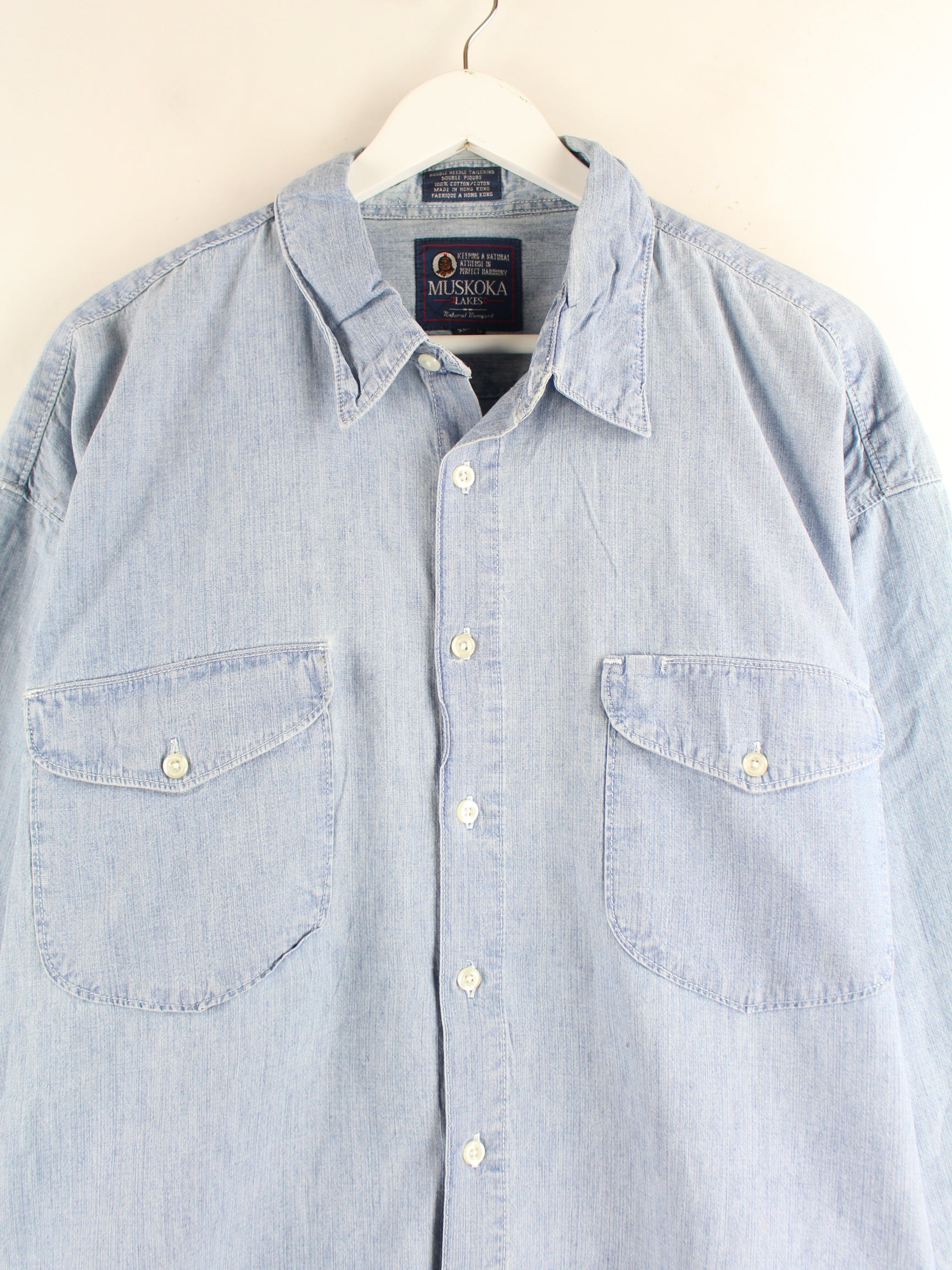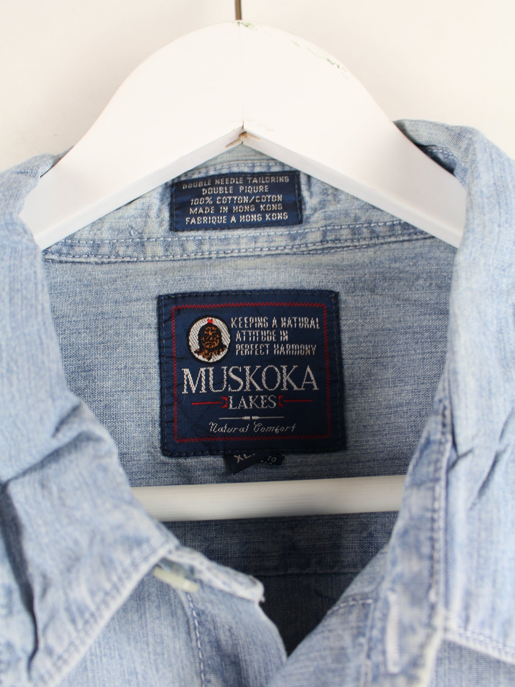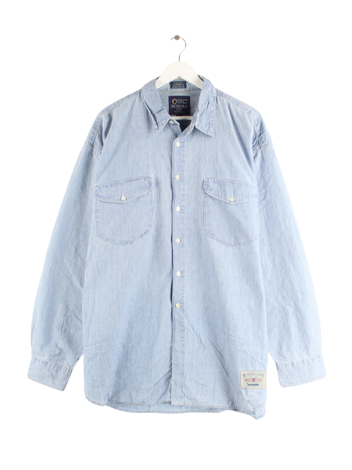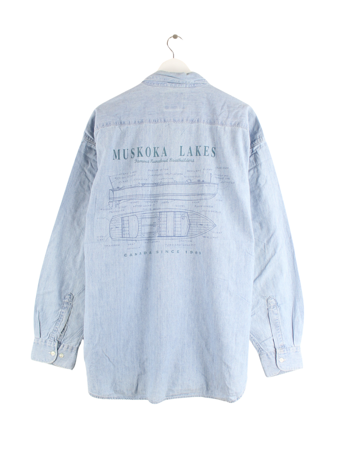 Vintage 90s Muskoka Lakes Print Jeans Hemd Blau XL