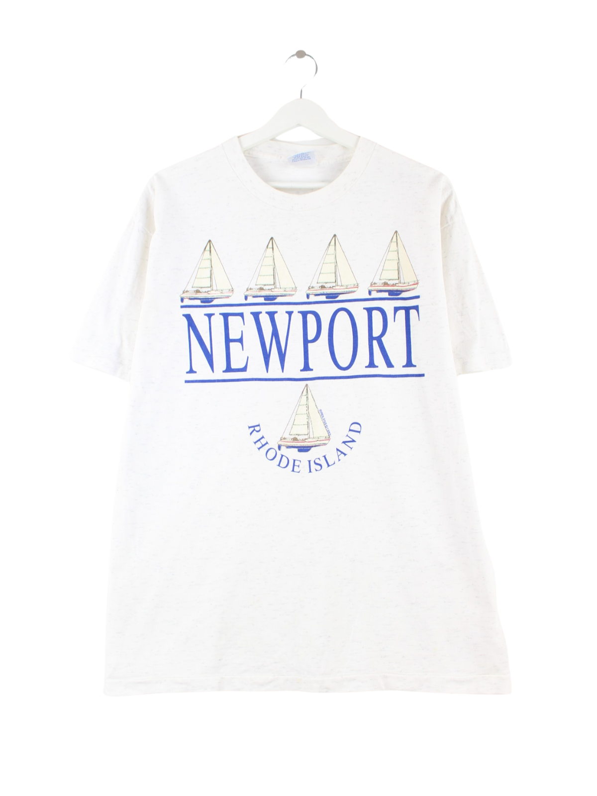 Vintage 90s New Port Print Single Stitch T-Shirt Weiß L
