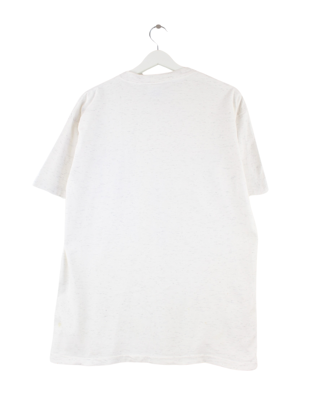 Weißes Vintage T-Shirt aus den 90'ern in Größe L. Es ist aus Baumwolle hergestellt und in gutem Zustand zu bekommen. Mit seltenem Port Print.