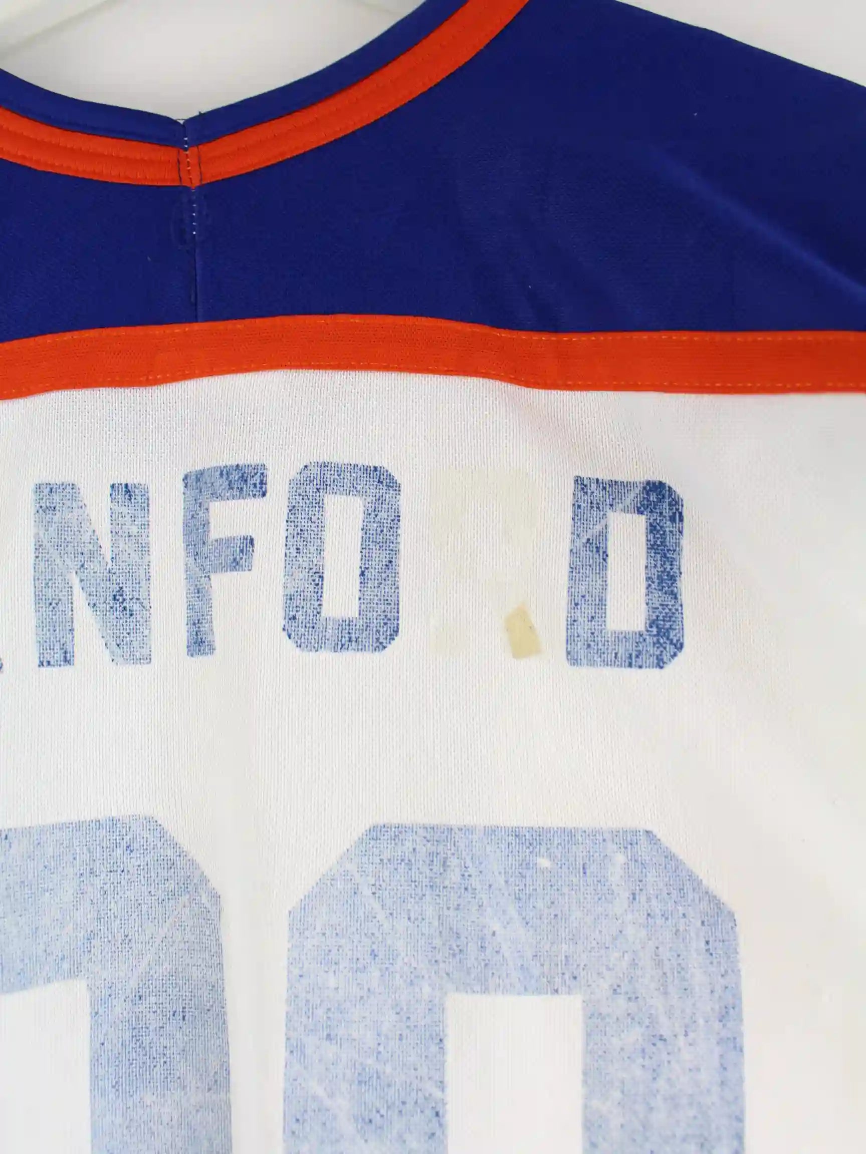Vintage NHL Edmonton Oilers Hockey Jersey in Größe M aus den 90'ern. Es ist aus Synthetik hergestellt und in Weiß zu bekommen.