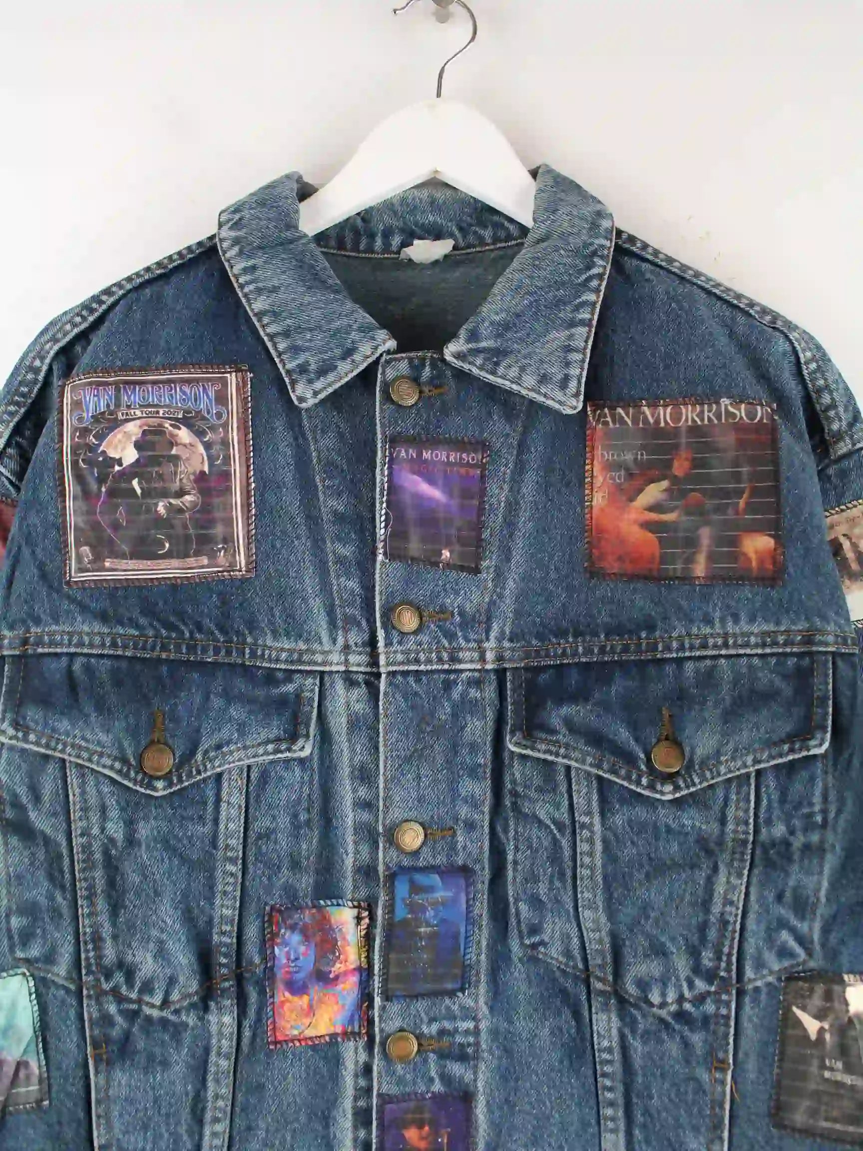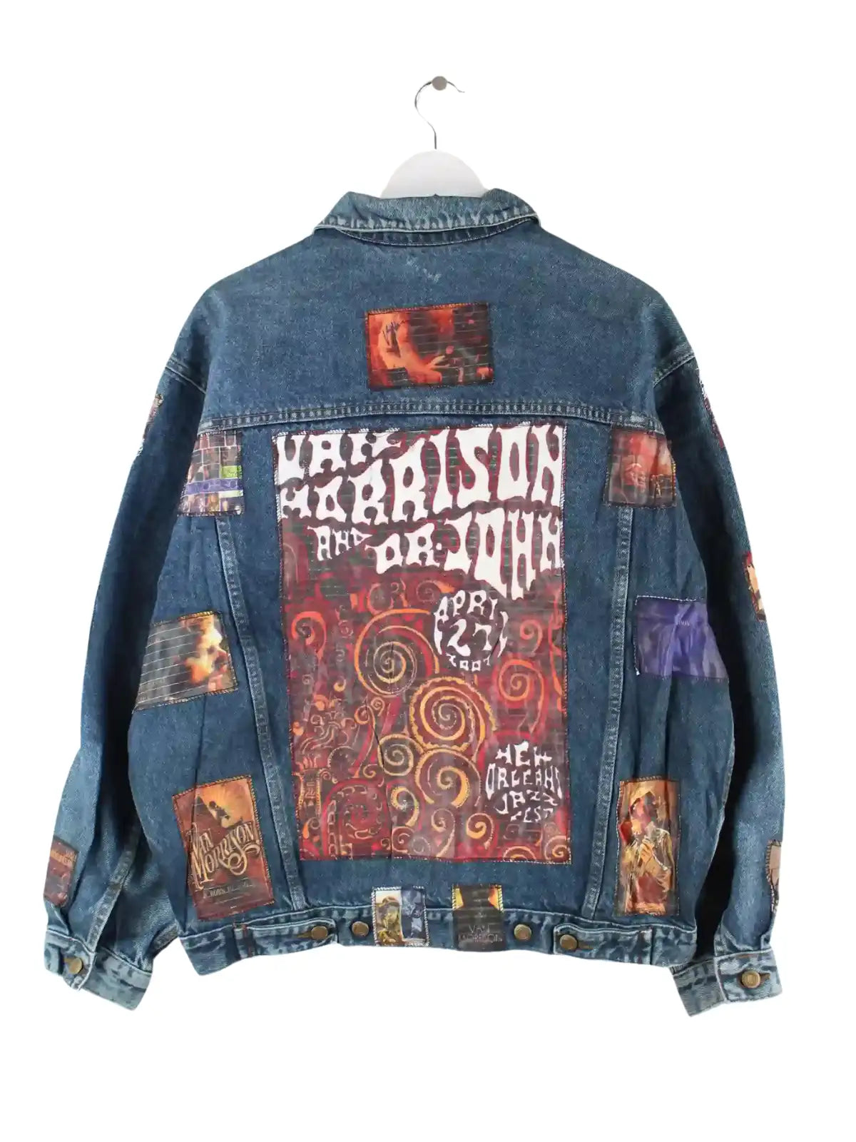 Vintage 90s Patch Rework Jeans Jacke Blau M
