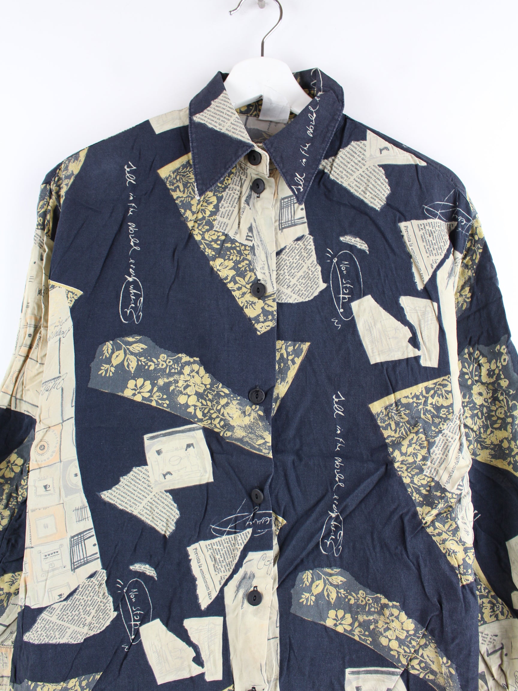 Vintage 90s Pattern Hemd Schwarz S