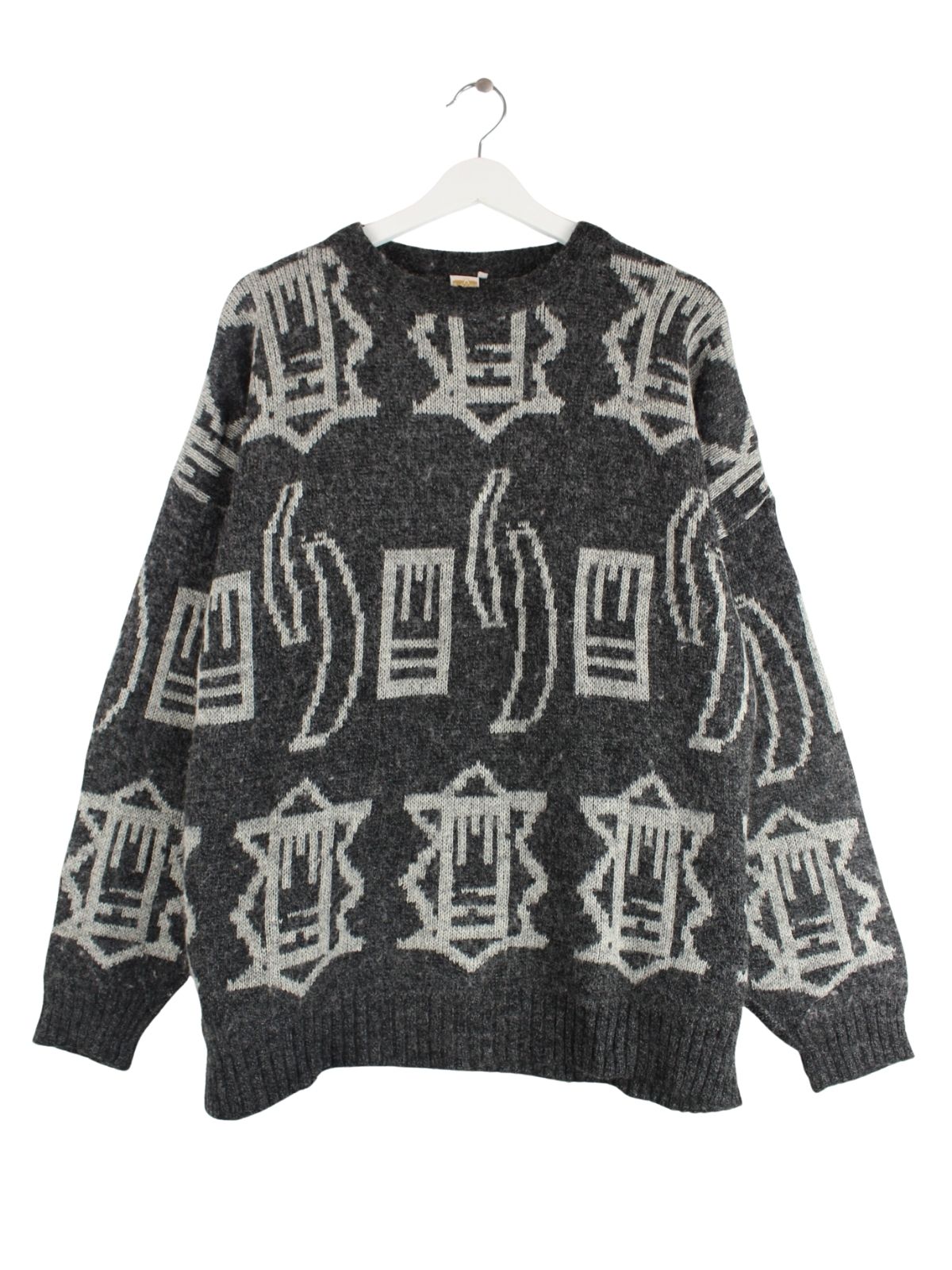 Vintage 90s Pattern Pullover Grau XL