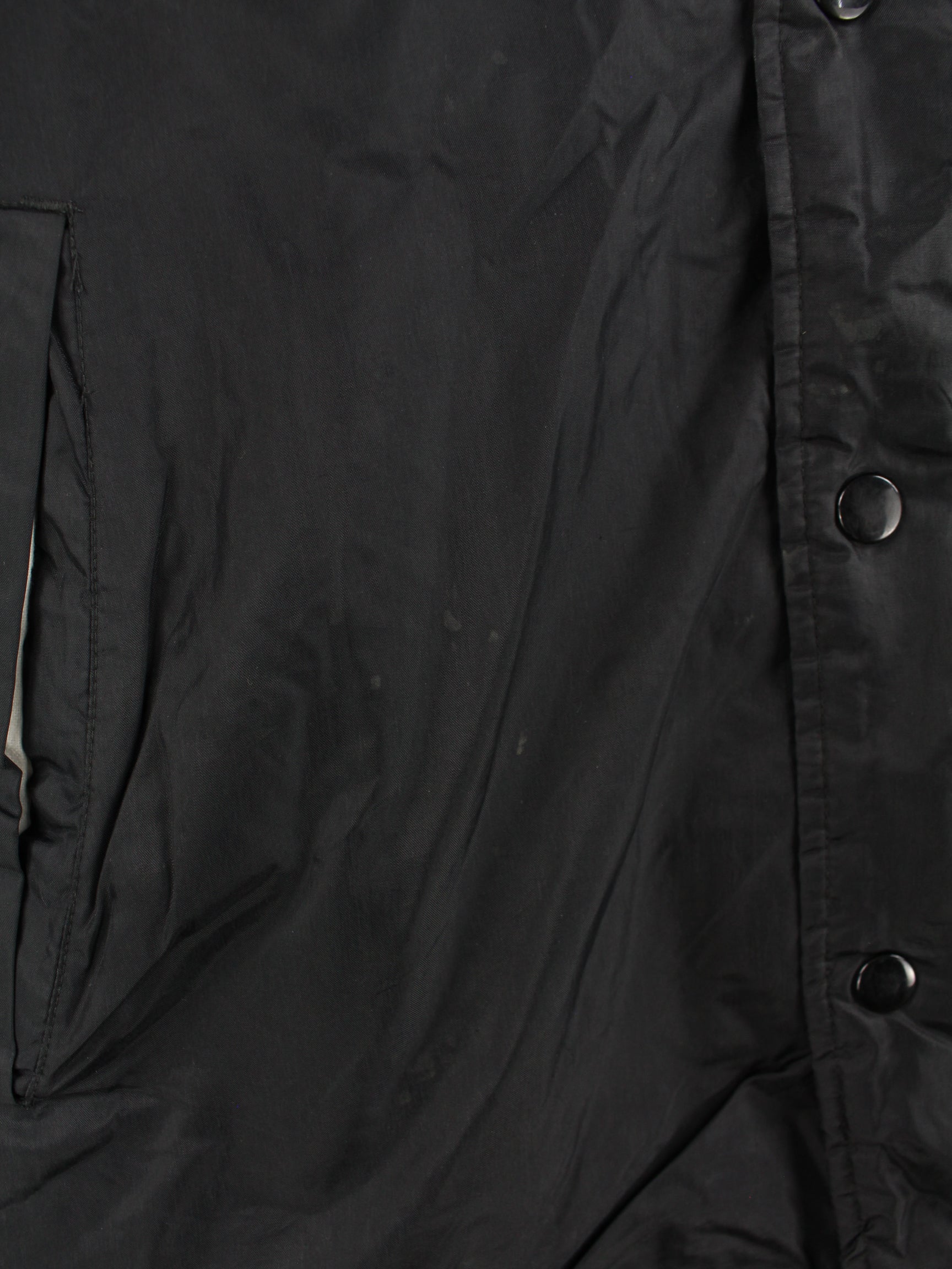 Vintage Leichte Jacke mit gestickten Mustern in Größe XXL aus den 90'ern. Sie ist aus Synthetik und in Schwarz bei uns zu bekommen.