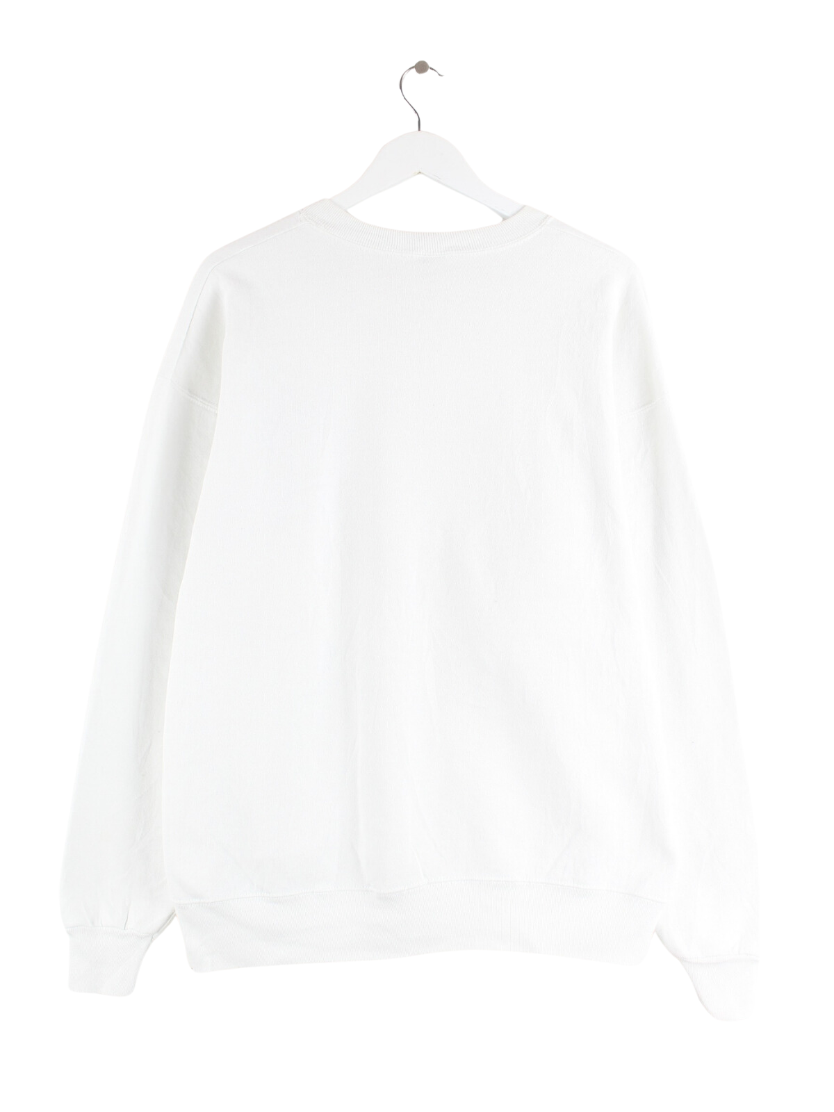 Weißer Vintage Sweater aus den 90'ern in Größe XL. Er ist aus einer Baumwollmischung angefertigt und in sehr gutem Zustand auf Lager. Mit schickem State Print.