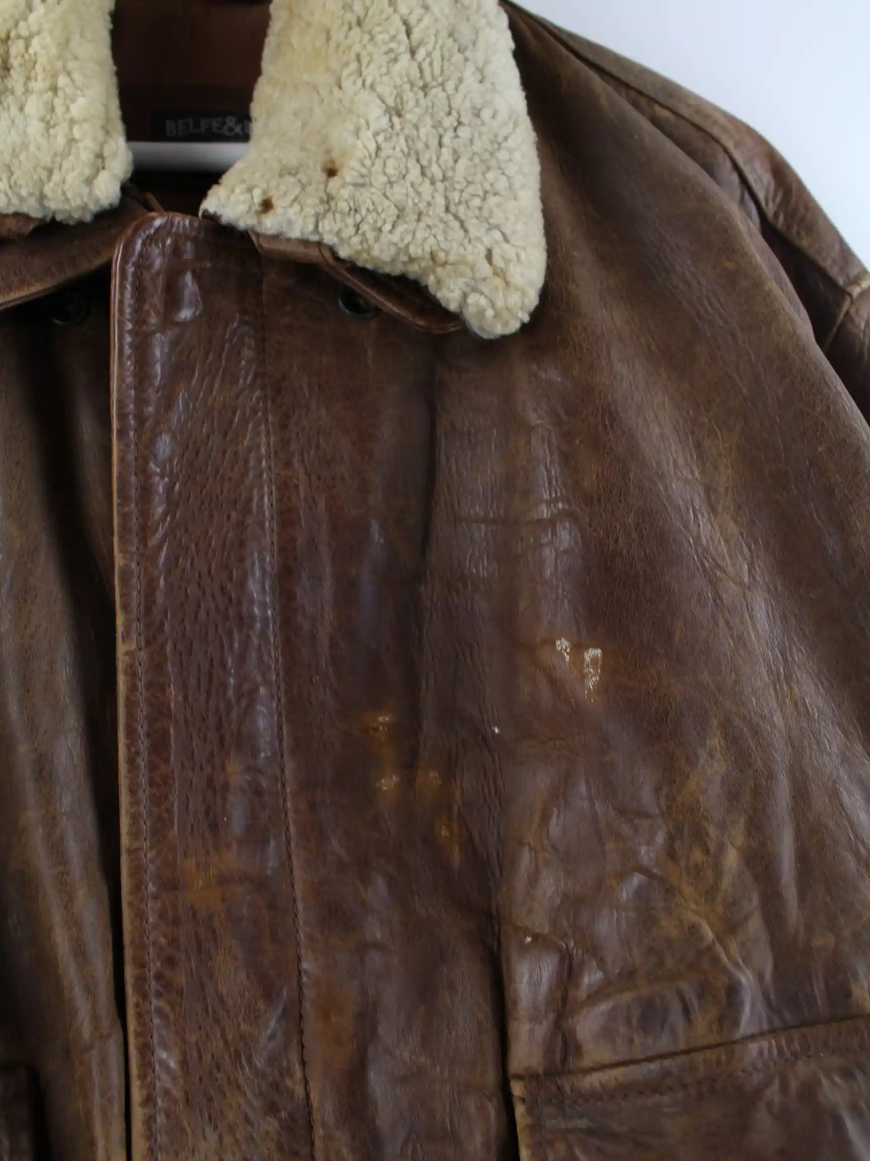 Braune Vintage Jacke aus den 90'ern in Größe XL. Sie ist aus Leder . Den Zustand würden wir als 'In Ordnung' bezeichnen (vergl. Bilder).