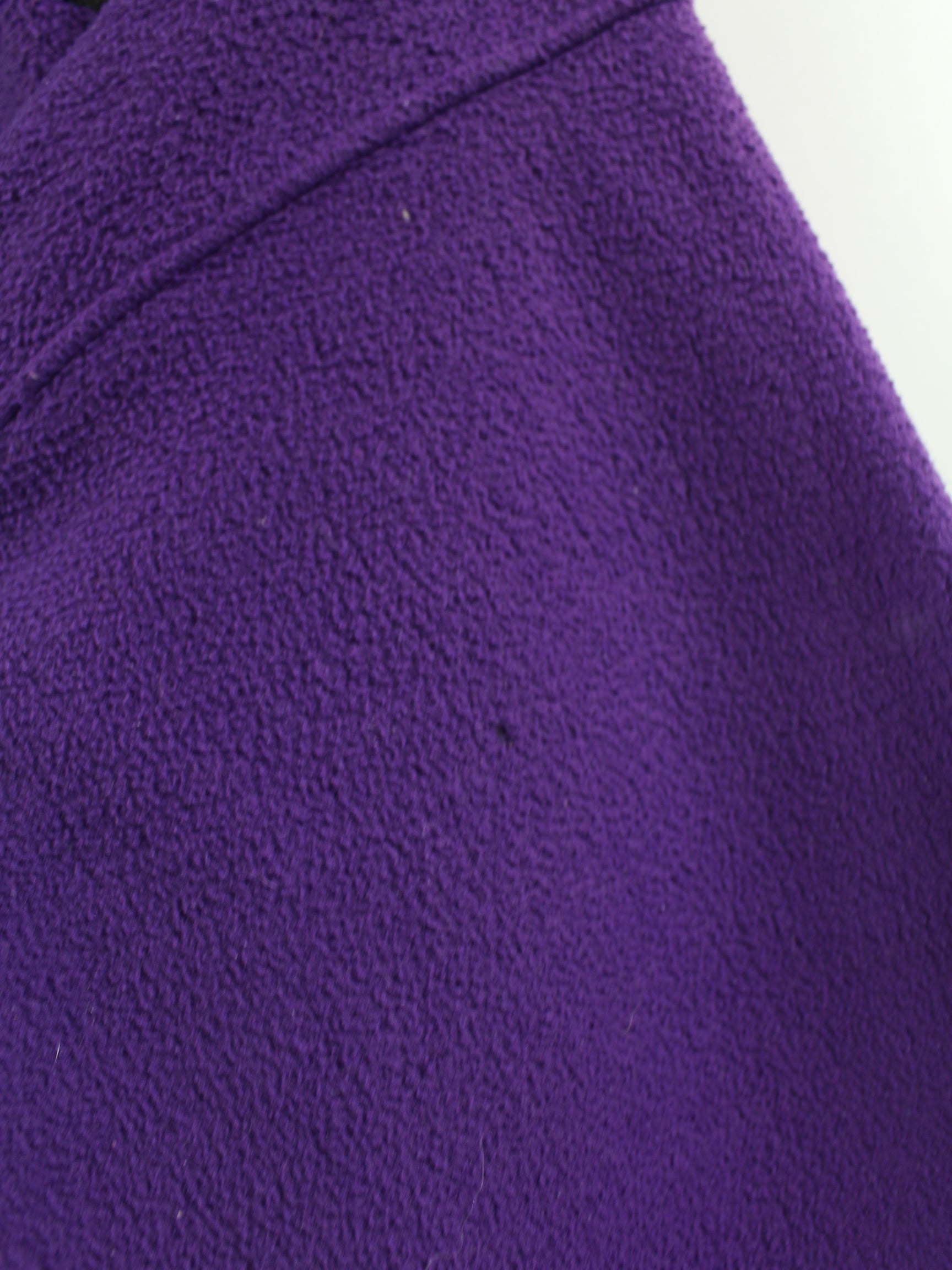 Lilafarbener Vintage Sweater mit halbem Reißverschluß aus den 90'ern in Größe XXL. Er ist aus gemütlichem Fleece produziert und in gutem Zustand im Bestand.