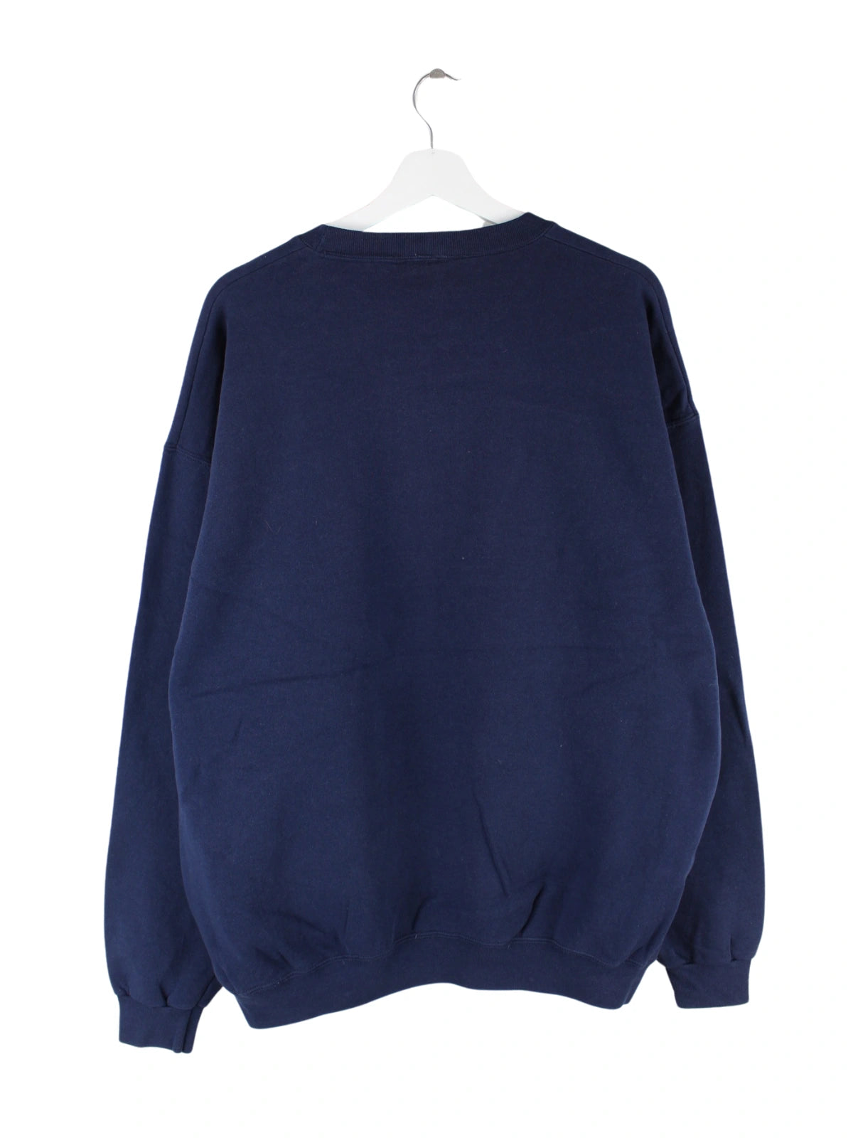 Blauer Vintage Sweater mit gesticktem Logo aus den 90'ern in Größe XL. Er ist aus einer Baumwollmischung gefertigt und in gutem Zustand zu bekommen.