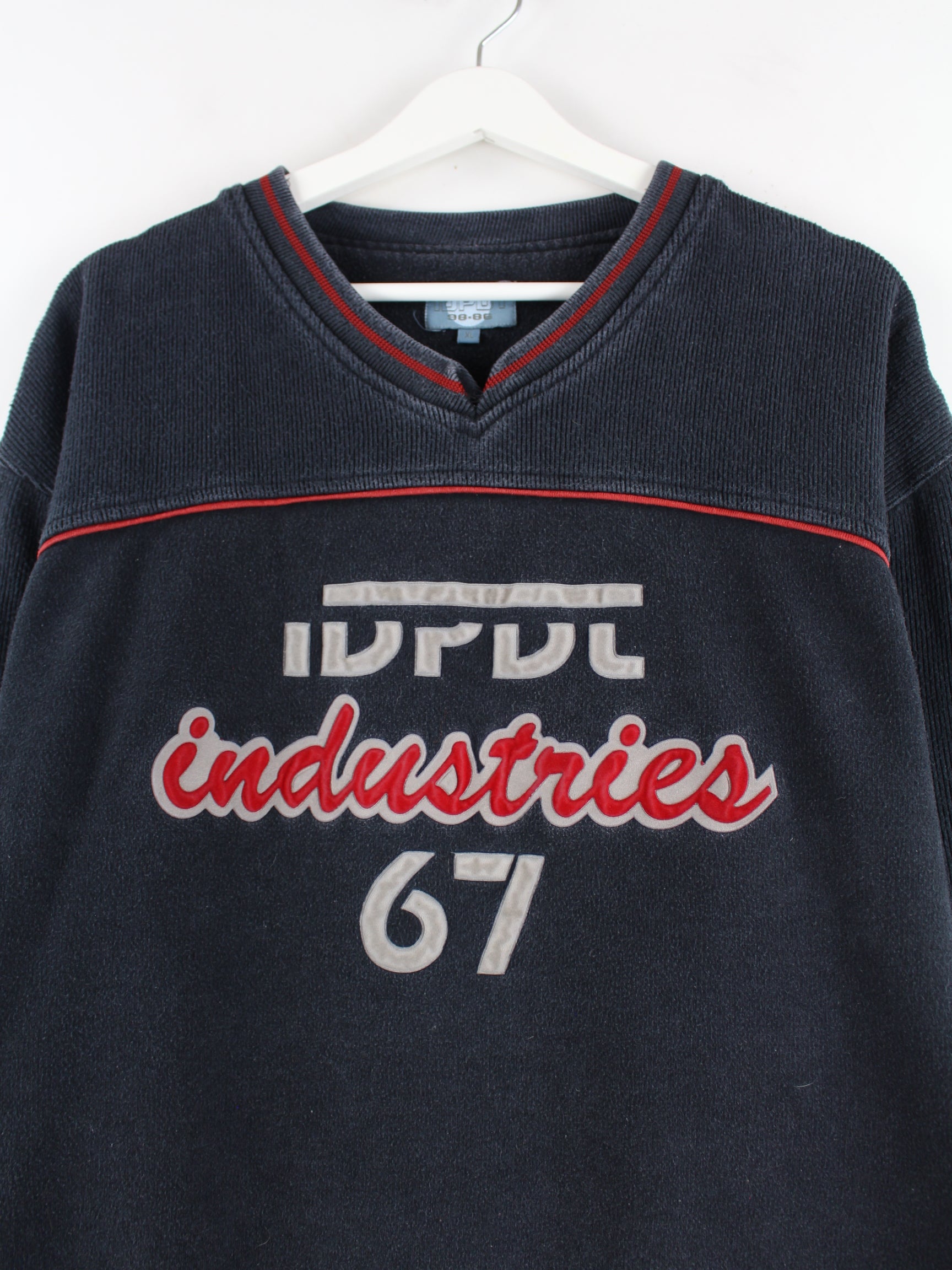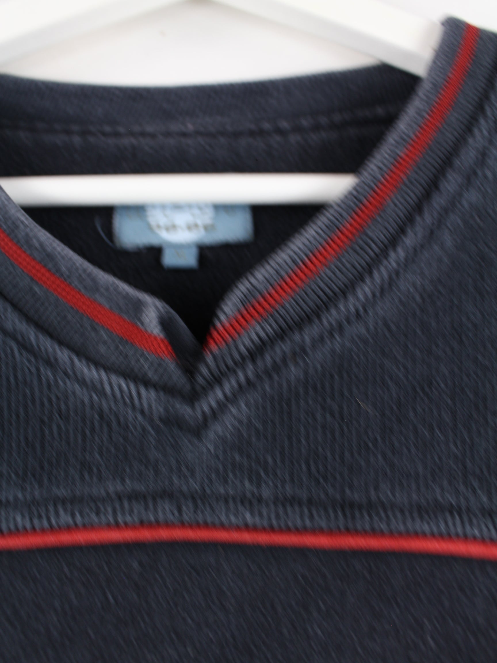 Vintage 90s Puff Print V-Neck Sweater Blau XL