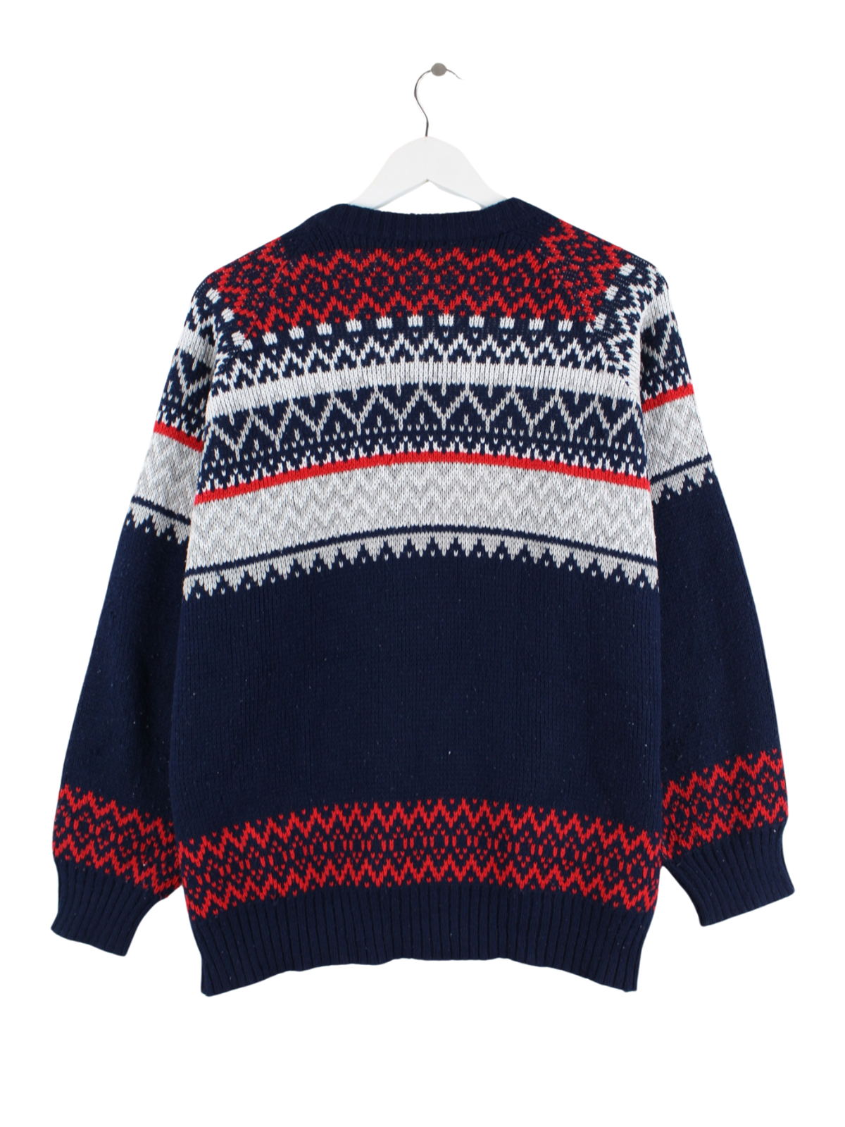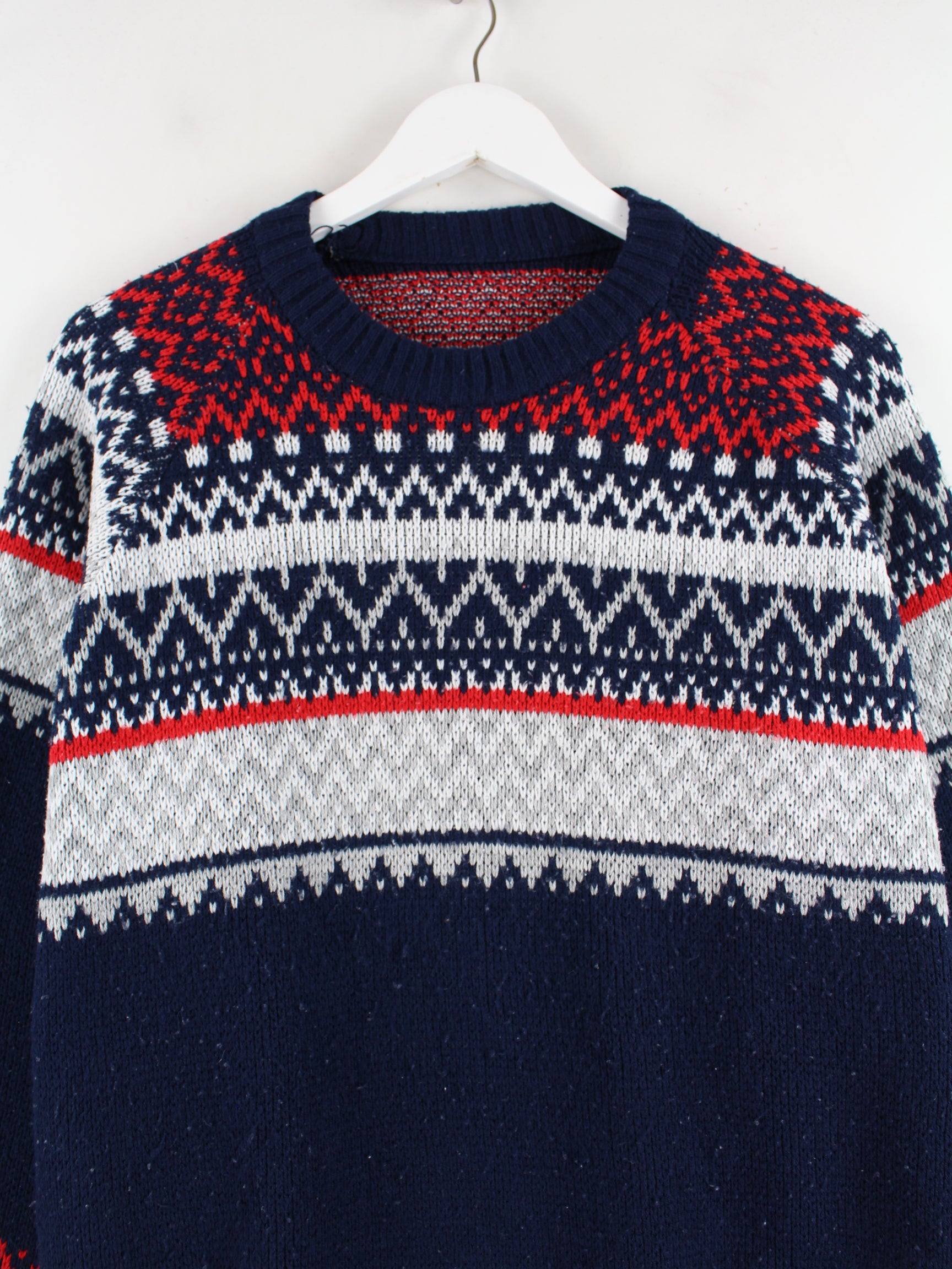 Blauer Vintage Pullover aus den 90'ern in Größe M. Er ist aus Baumwolle produziert und in gutem Zustand in Stock.