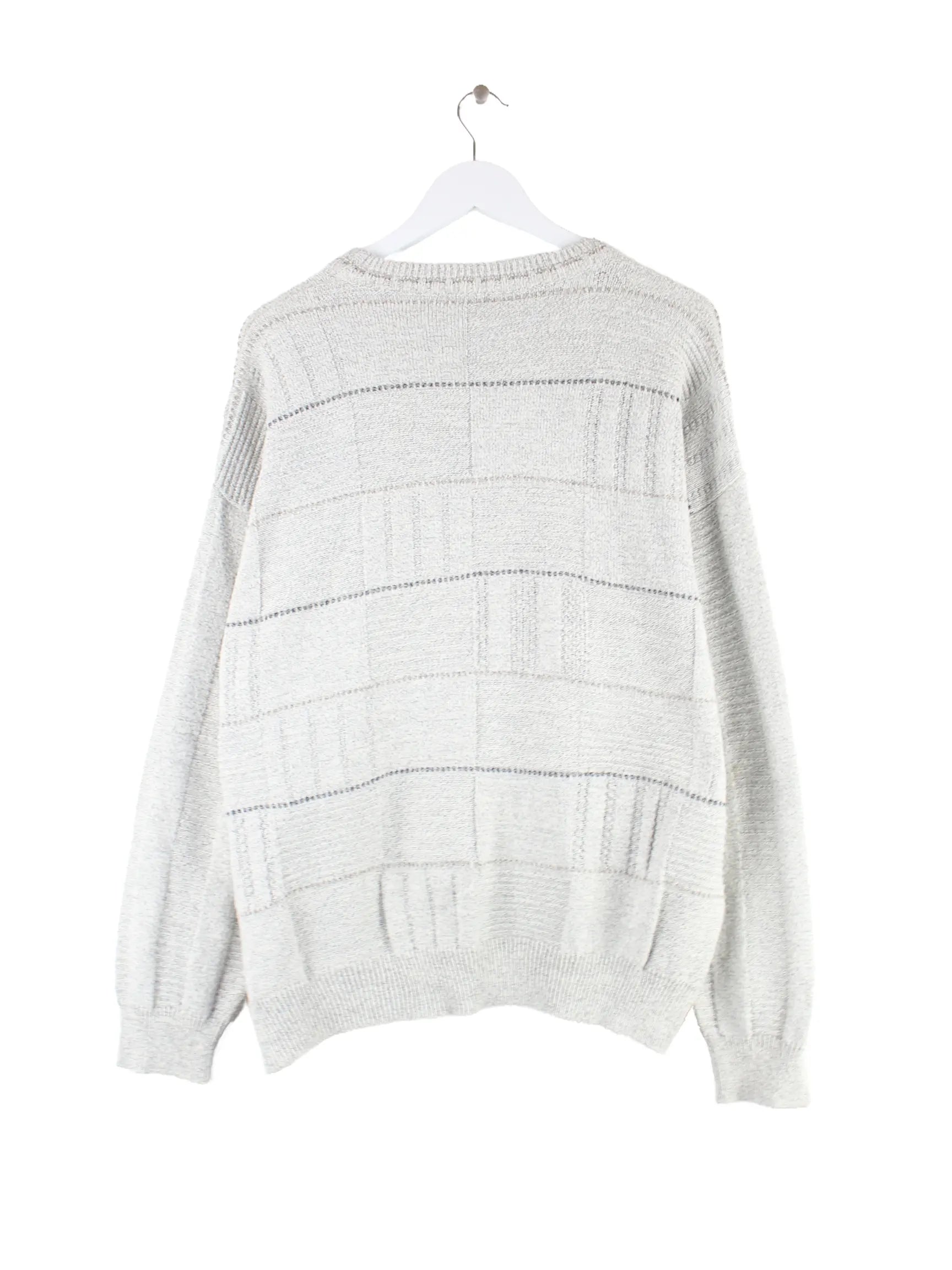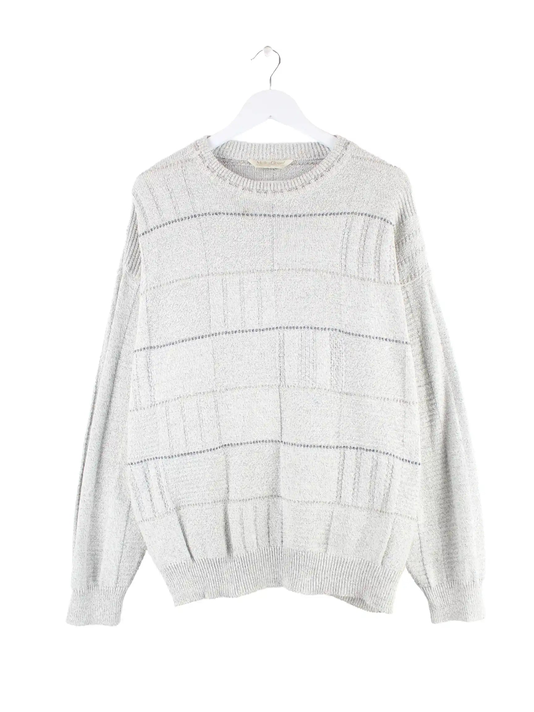 Grauer Vintage Pullover aus den 90'ern in Größe L. Er ist aus einer Baumwollmischung und in sehr gutem Zustand im Bestand.
