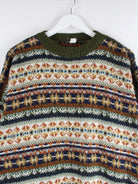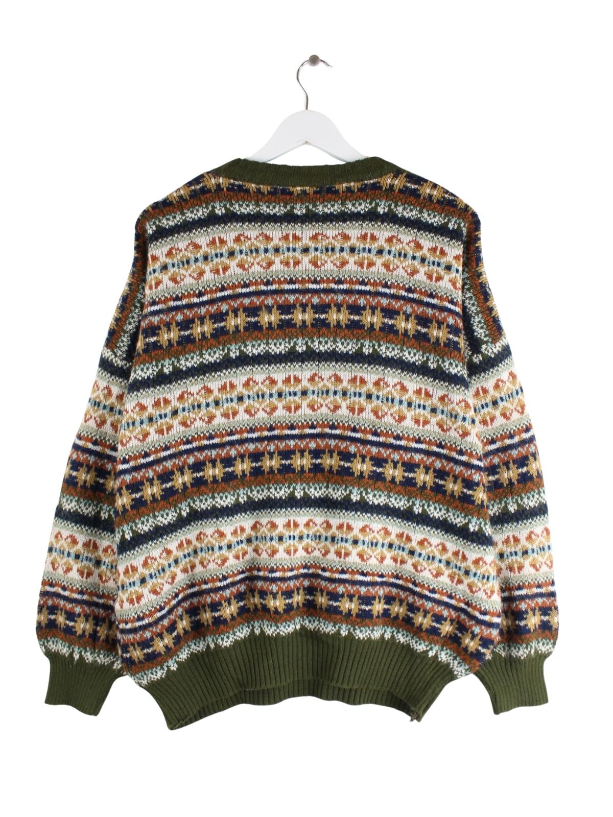 Mehrfarbiger Vintage Pullover aus den 90'ern in Größe XL. Er ist aus Acryl hergestellt und in sehr gutem Zustand zu haben.