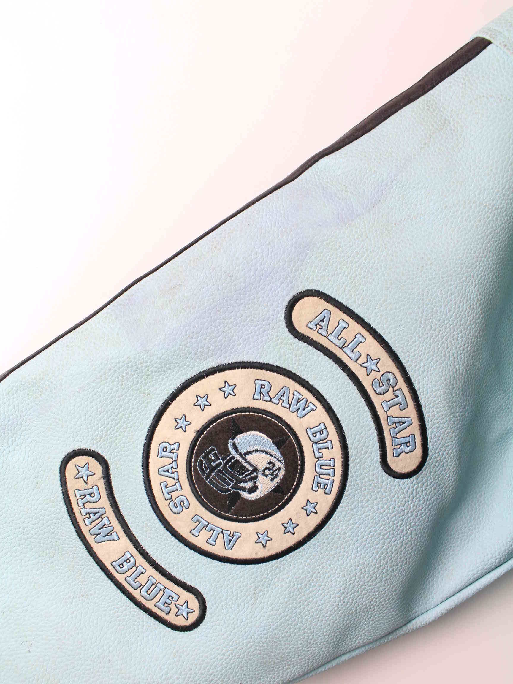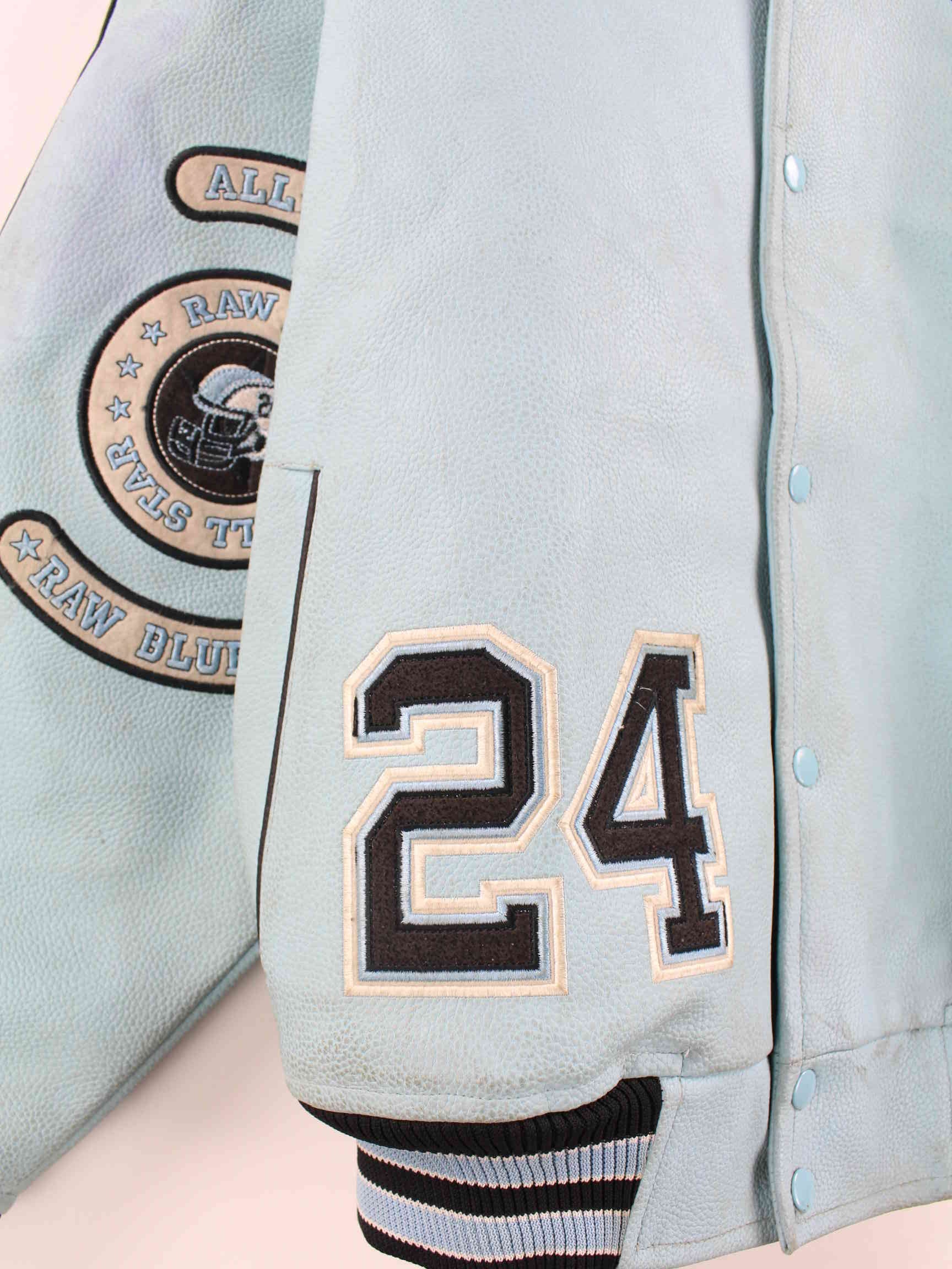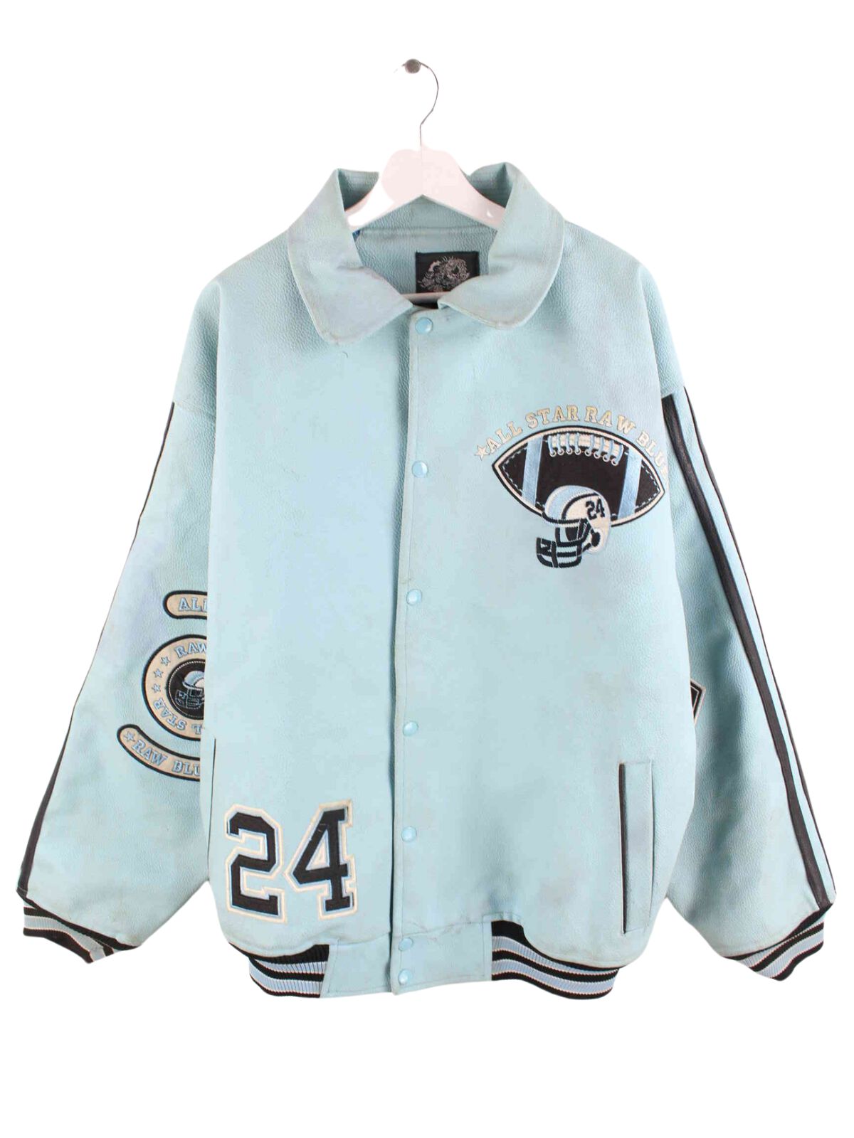 Vintage 90s Raw Blue College Jacke Türkis XXL
