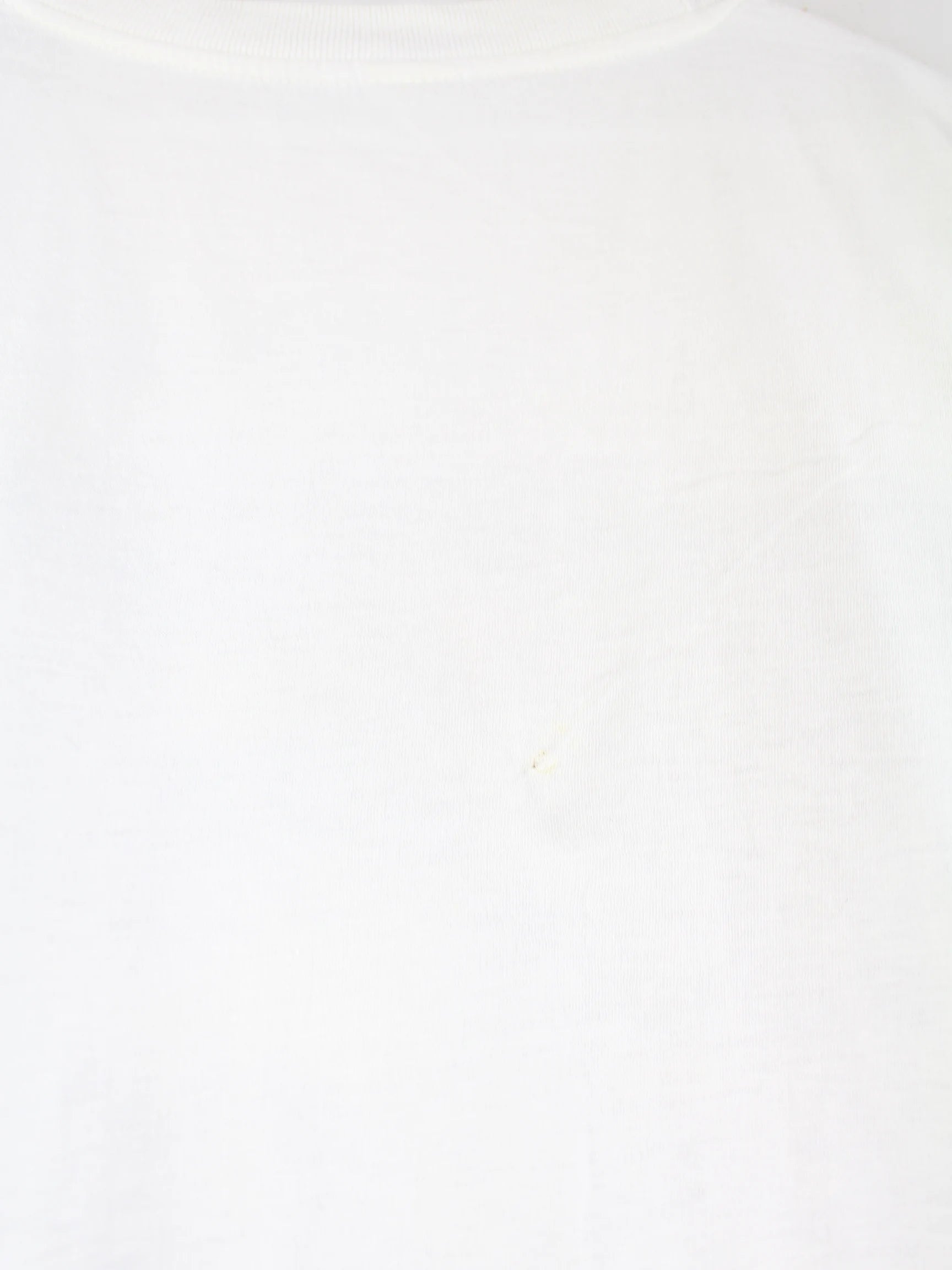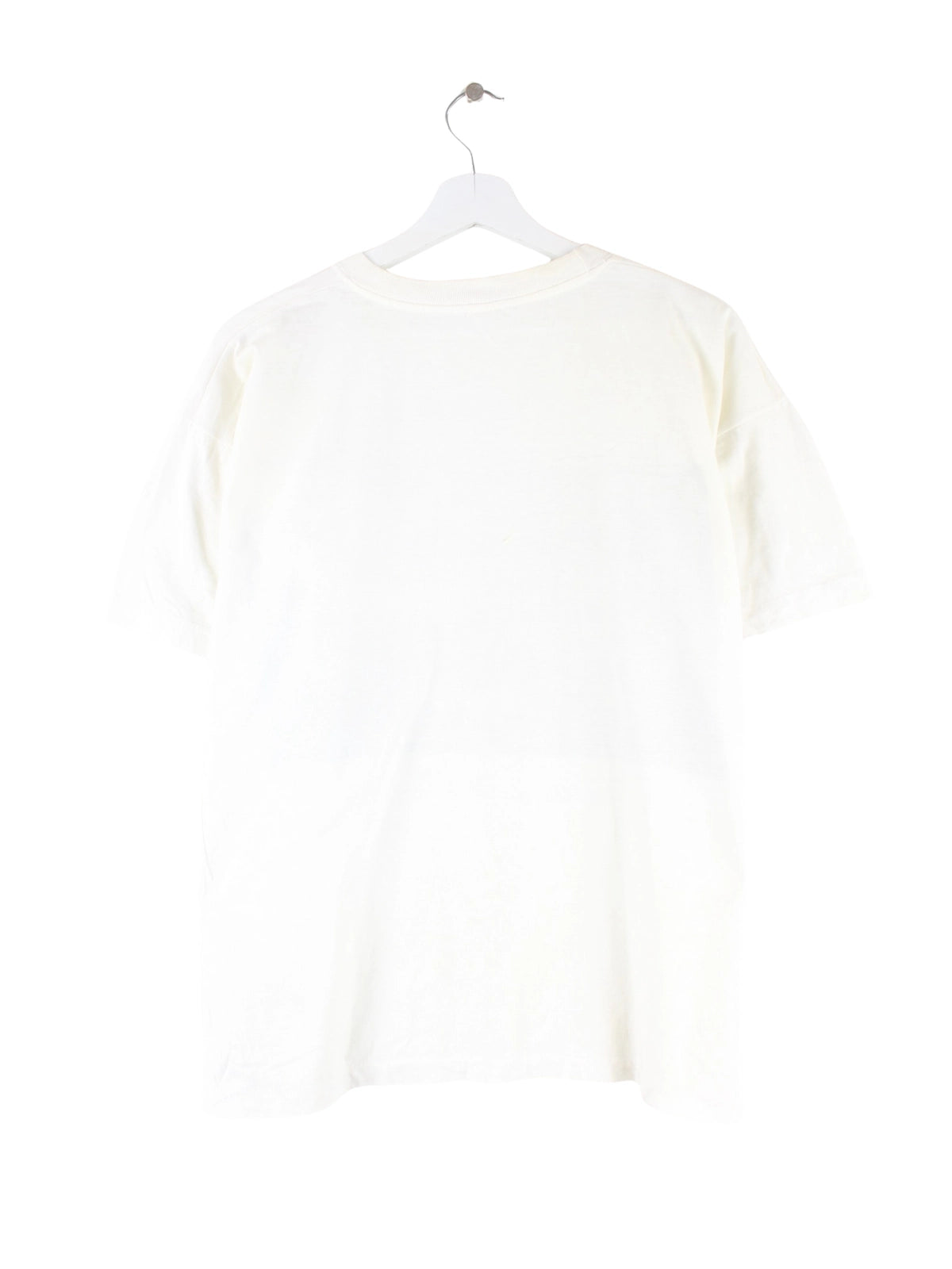 Weißes Vintage T-Shirt aus den 90'ern in Größe M. Es ist aus Baumwolle angefertigt und in gutem Zustand zu haben.