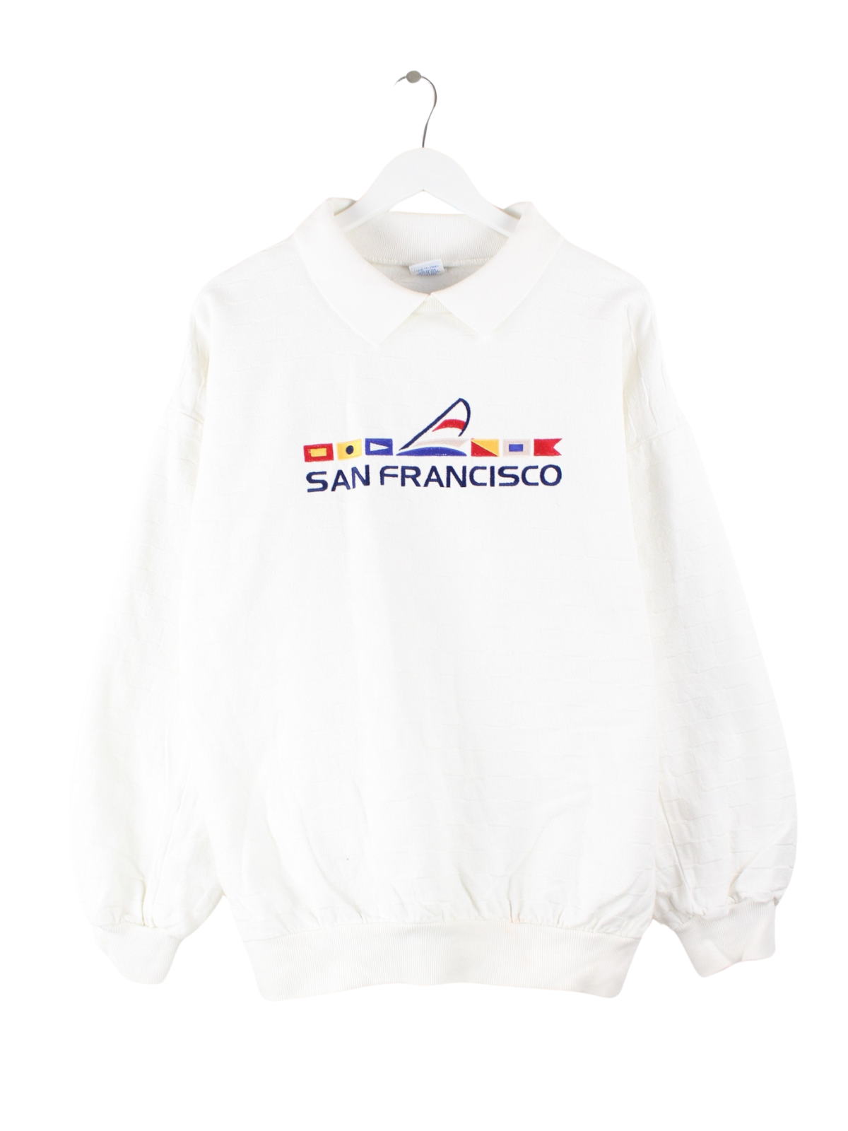 Vintage 90s San Francisco Embroidered Polo Sweater Weiß M