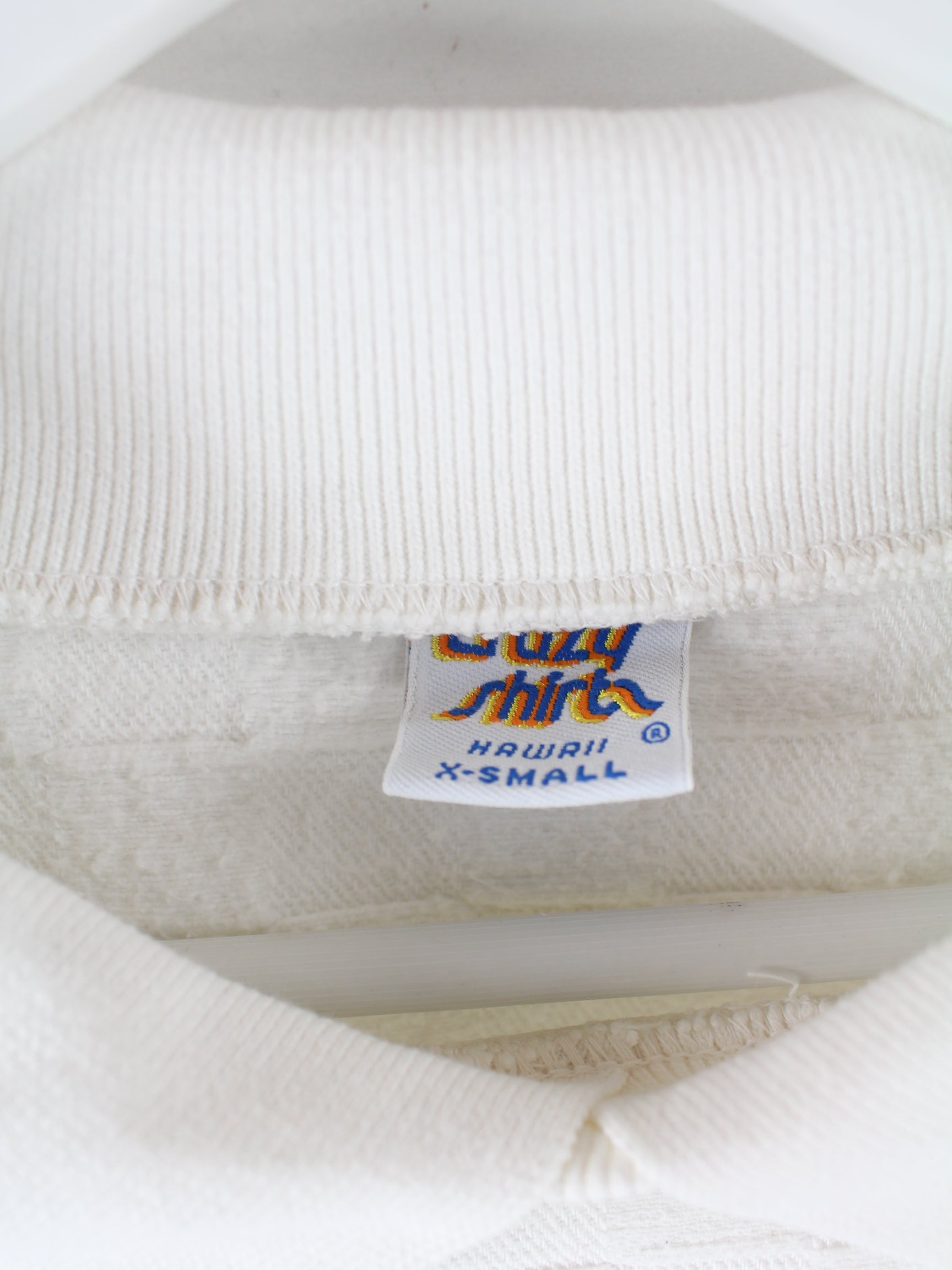 Vintage Sweater mit Stickereien in Größe M aus den 90'ern. Er ist aus einer Baumwollmischung und in Weiß bei uns zu bekommen.