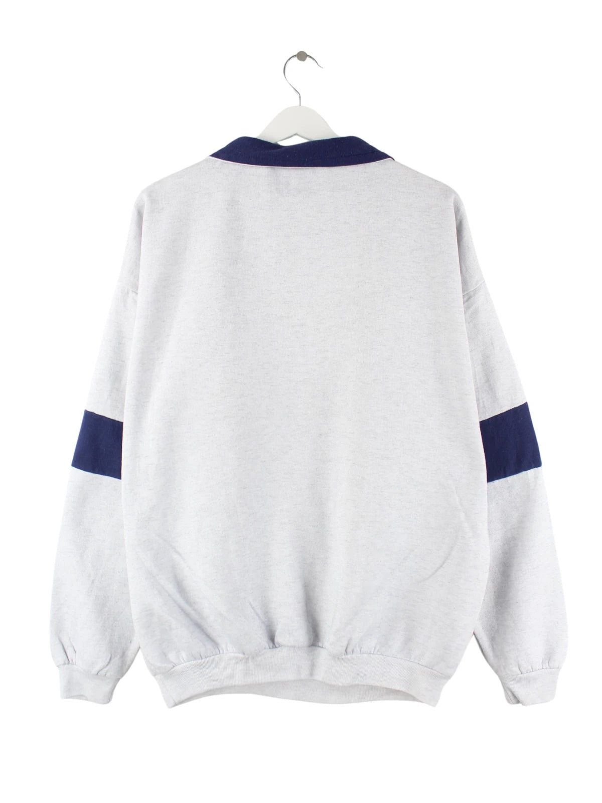 Vintage Sweater mit kurzem Reißverschluß in Größe XL aus den 90'ern. Er ist aus einer Baumwollmischung hergestellt und in Grau vorrätig. Mit seltenem Francisco Print.