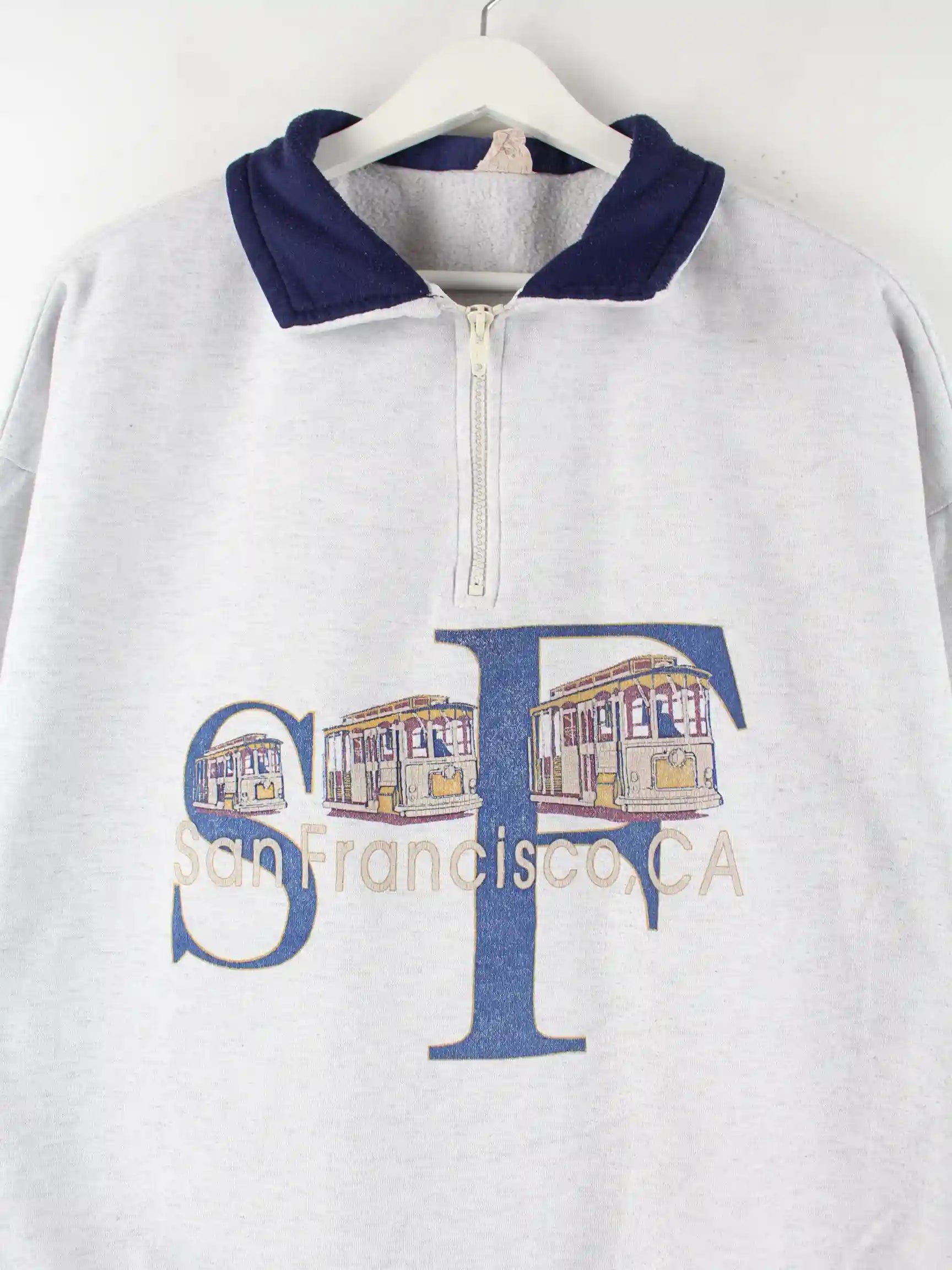 Vintage 90s San Francisco Print Half Zip Sweater Grau XL