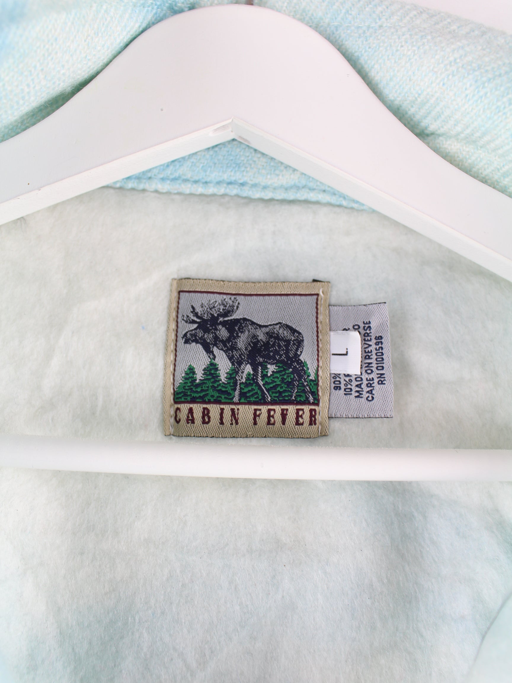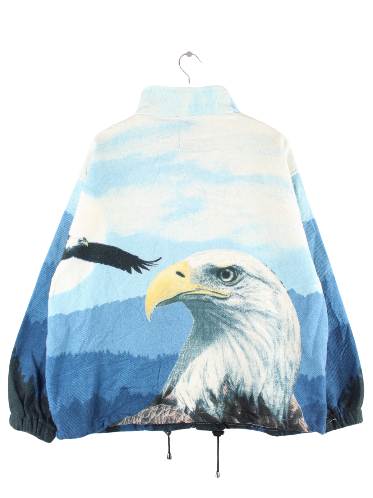 Vintage Jacke in Größe L aus den 90'ern. Sie ist aus Synthetik angefertigt und in Blau im Bestand.