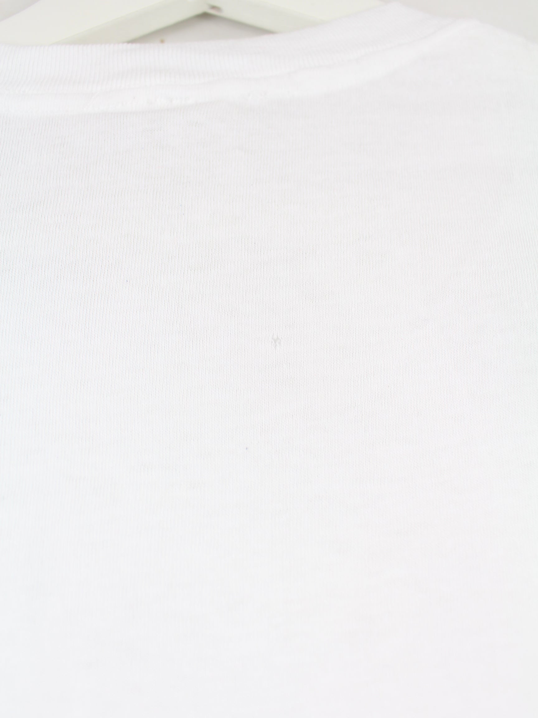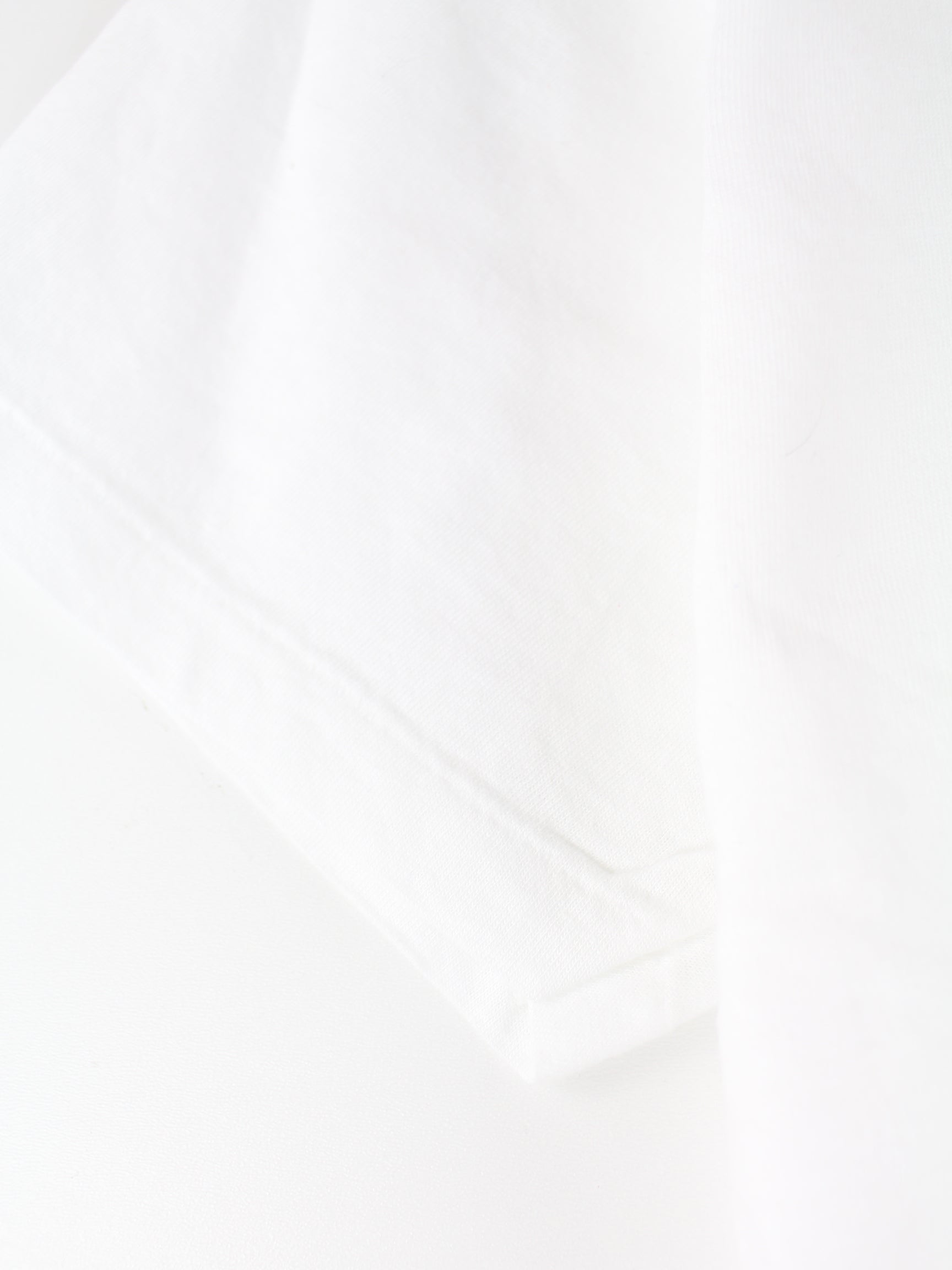 Weißes Vintage T-Shirt aus den 90'ern in Größe M. Es ist aus einer Baumwollmischung gemacht und in gutem Zustand bei uns zu bekommen.
