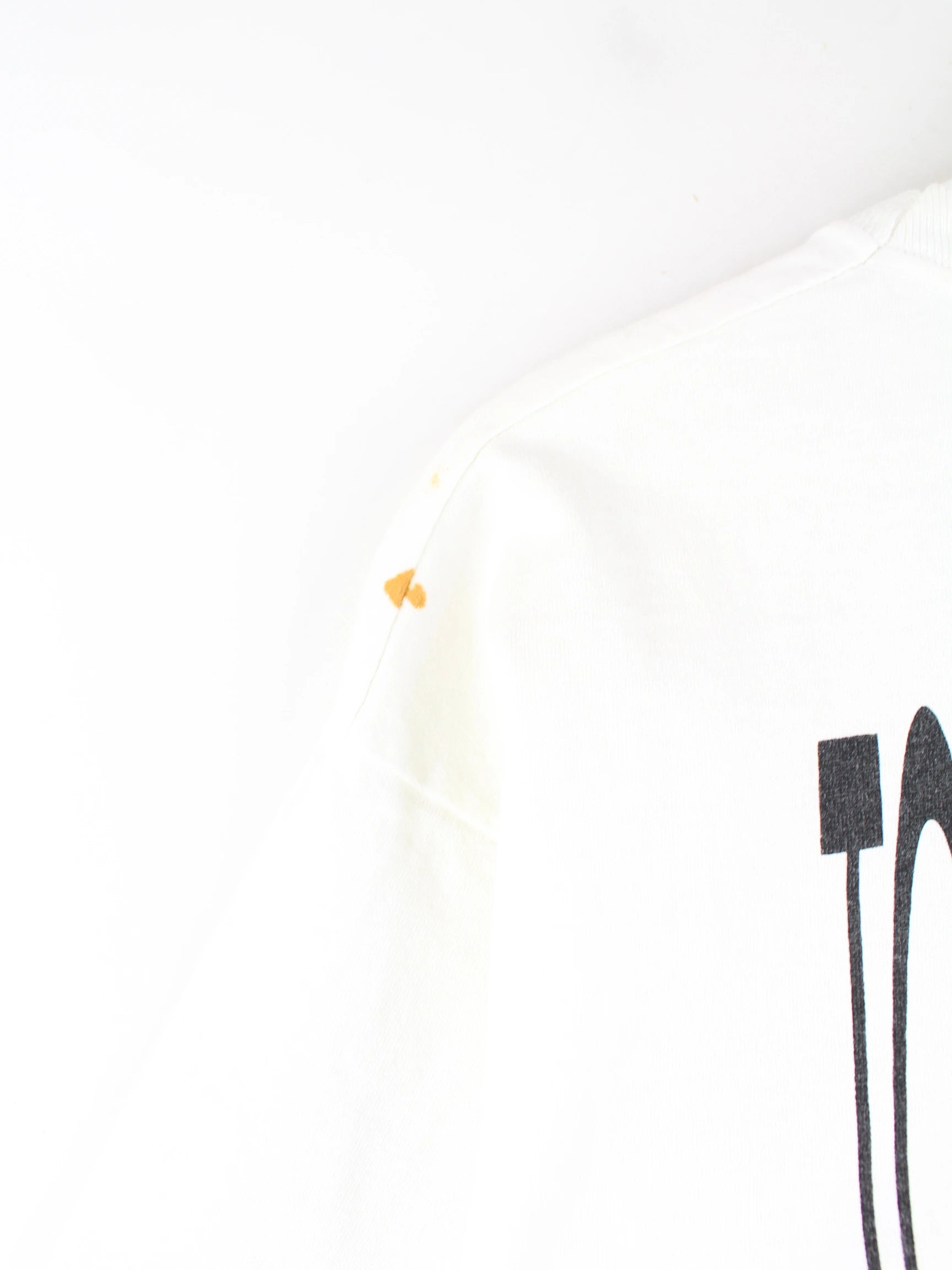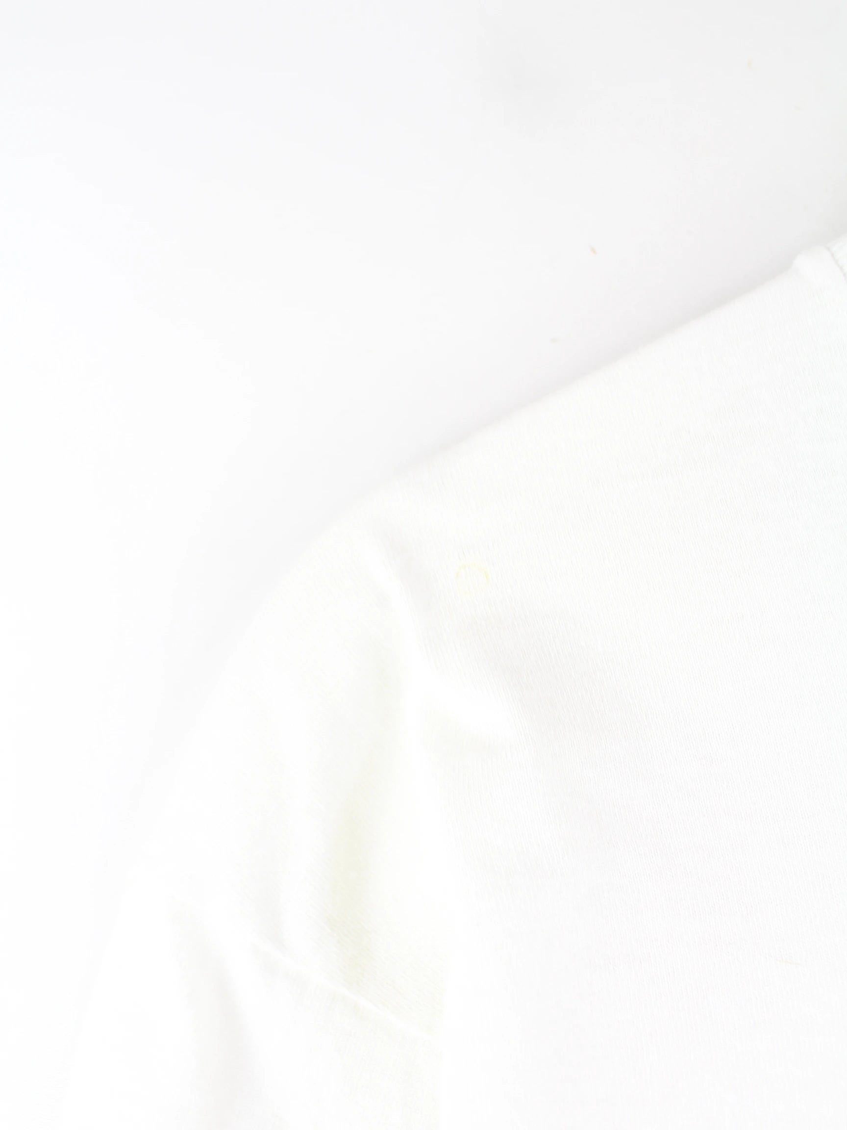 Vintage T-Shirt in Größe XL aus den 90'ern. Es ist aus Baumwolle gefertigt und in Weiß auf Lager.