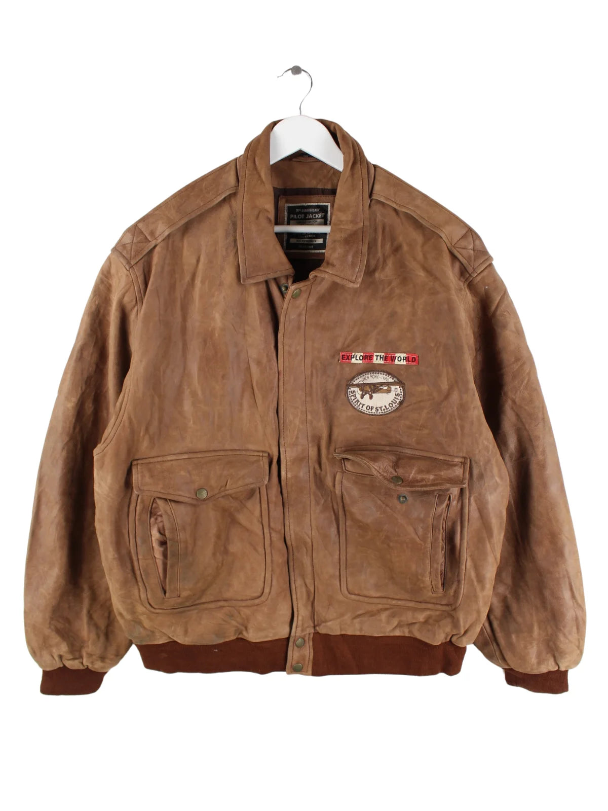 Vintage 90s Spirit of St. Louis Leder Piloten Jacke Braun XL