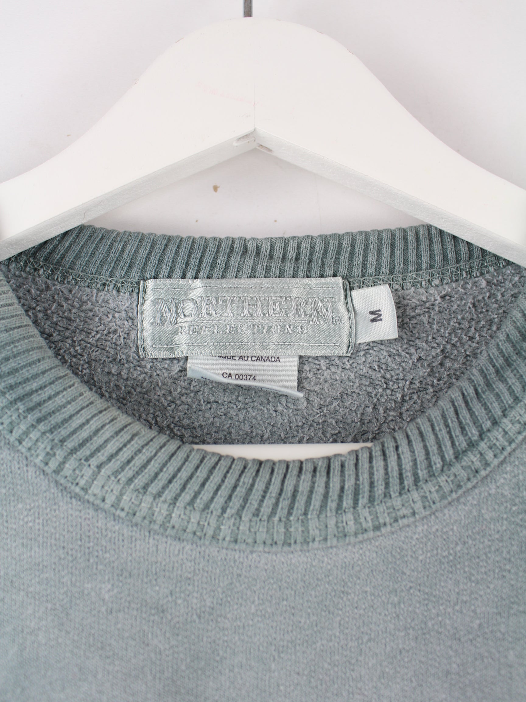 Vintage Sweater in Größe XL aus den 90'ern. Er ist aus einer Baumwollmischung und in Grau lieferbar.
