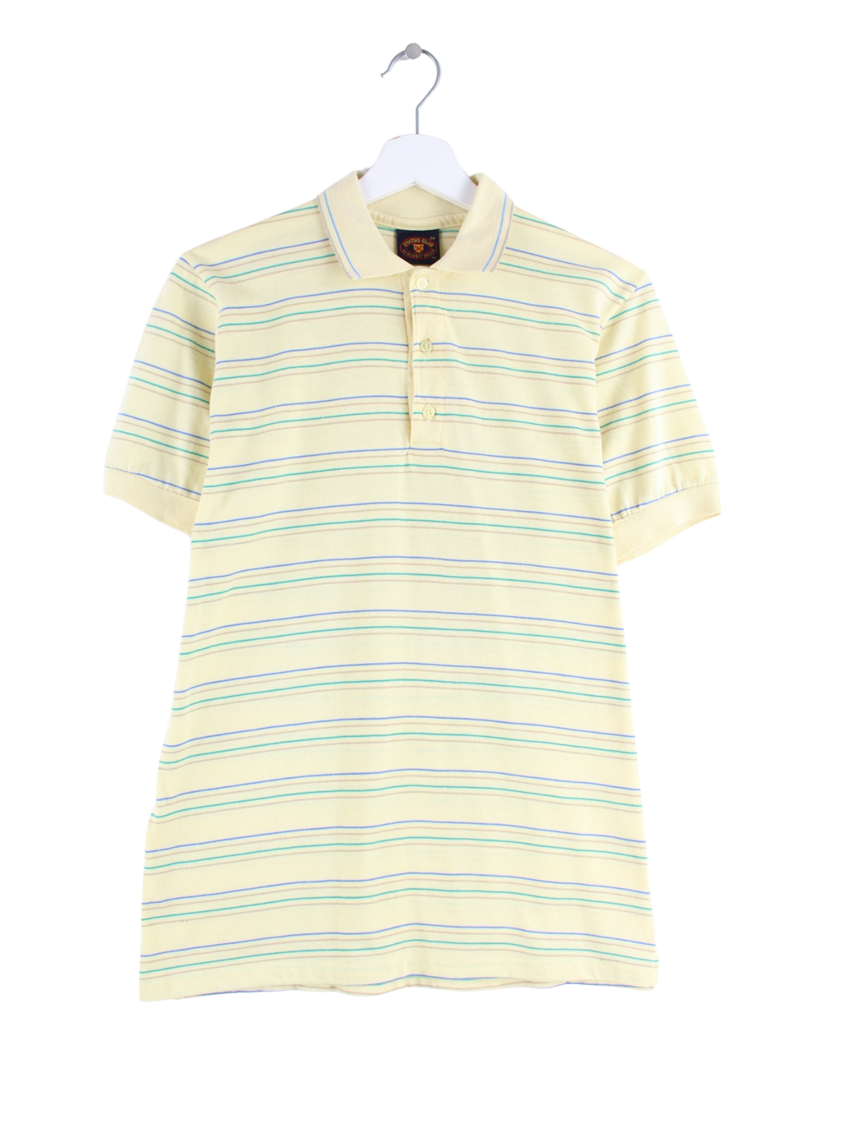 Vintage Poloshirt in Größe M aus den 90'ern. Es ist aus Baumwolle gefertigt und in Gelb vorrätig.