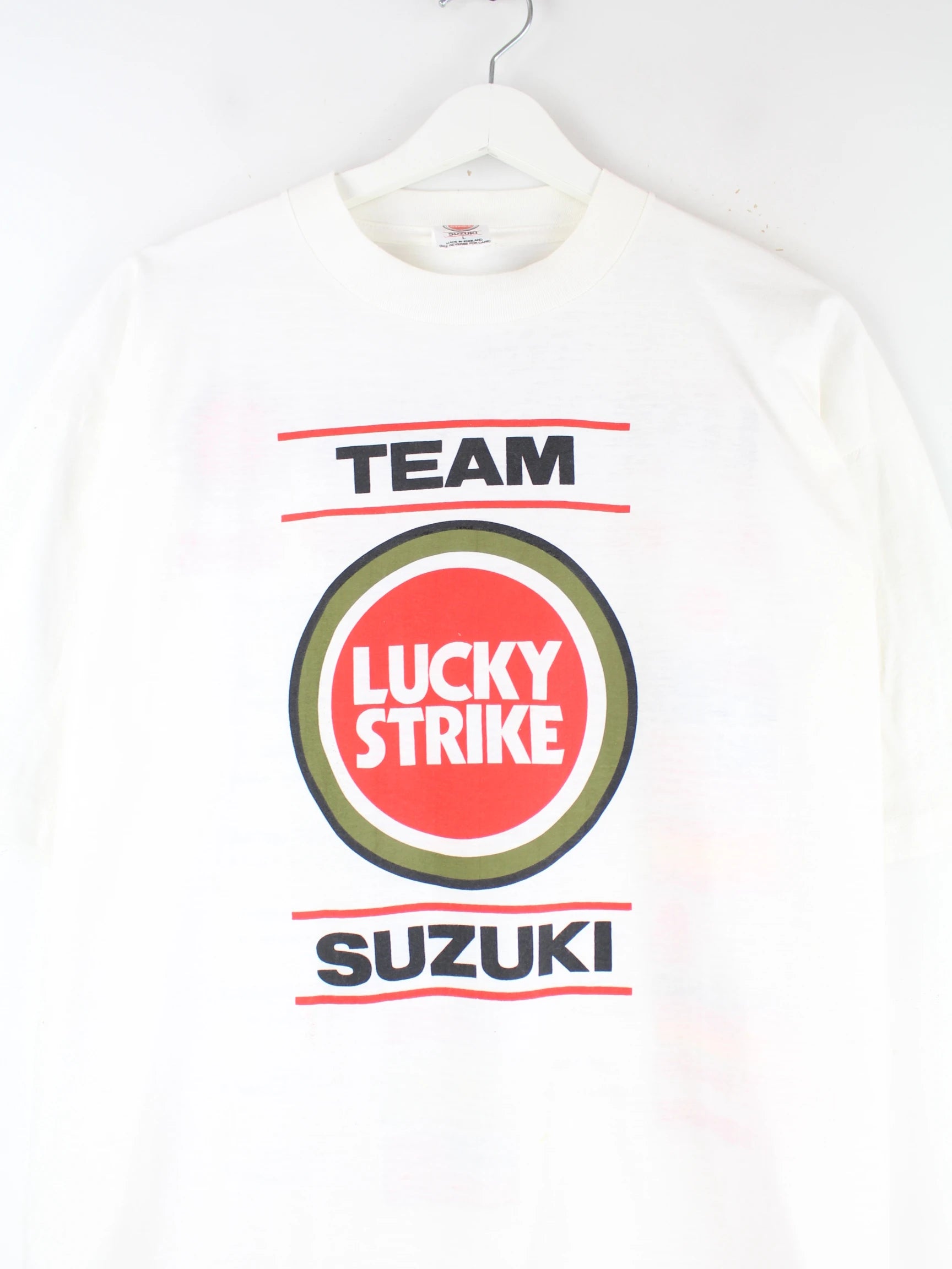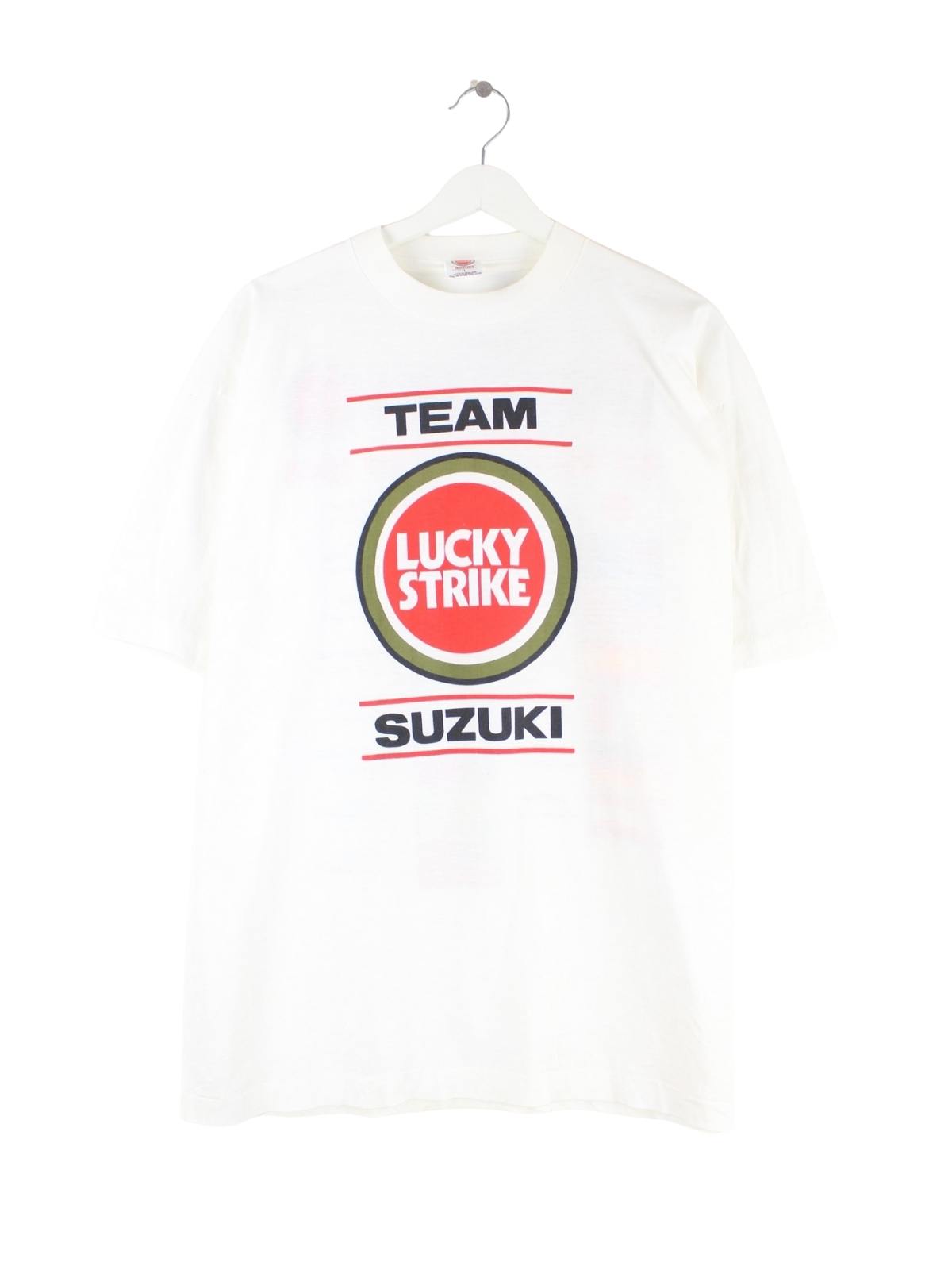 Vintage 90s Suzuki Lucky Strike Racing Print T-Shirt Weiß L