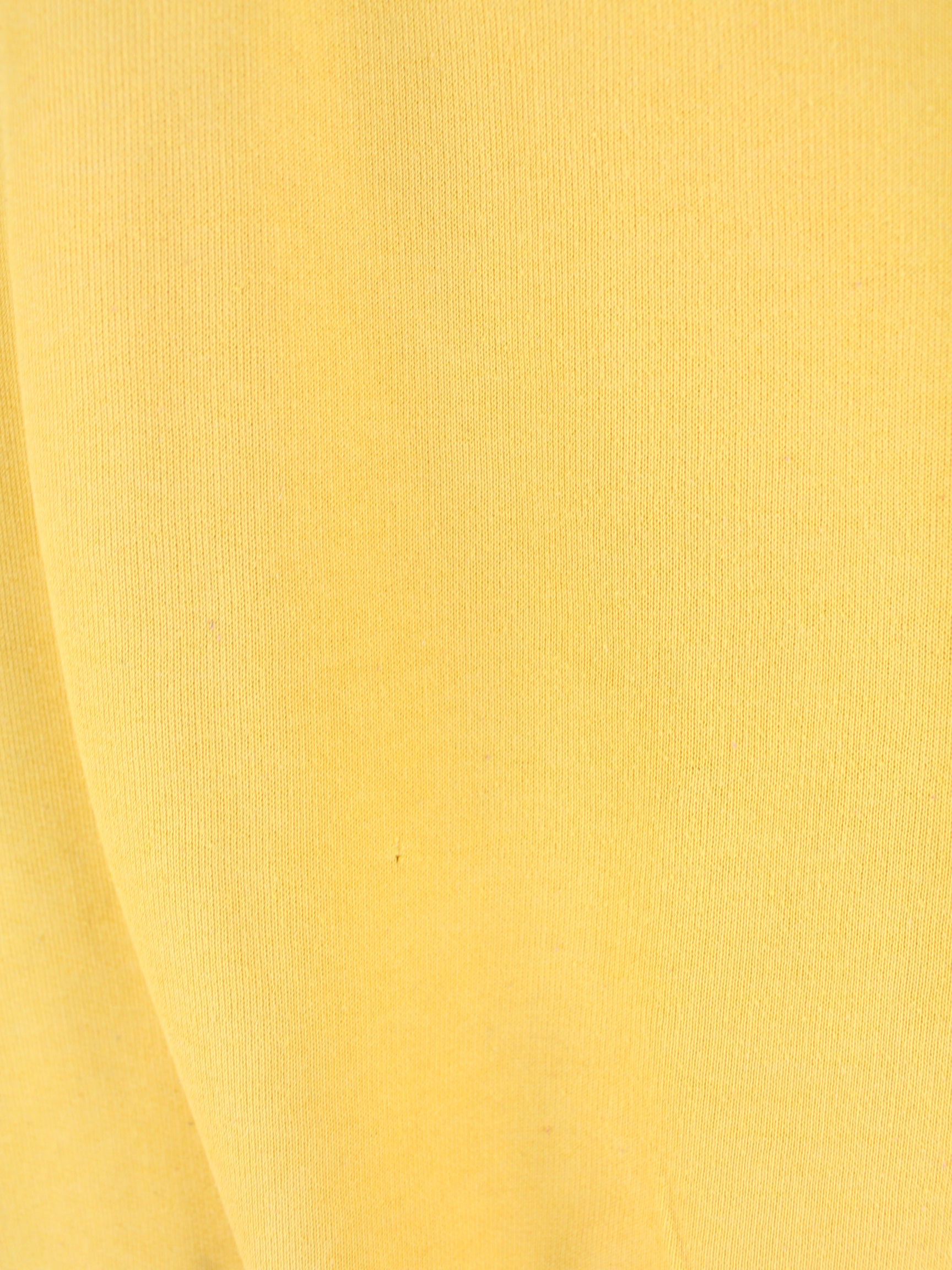 Vintage Sweater mit gestickten Motiven in Größe XL aus den 90'ern. Er ist aus einer Baumwollmischung hergestellt und in Gelb in Stock.