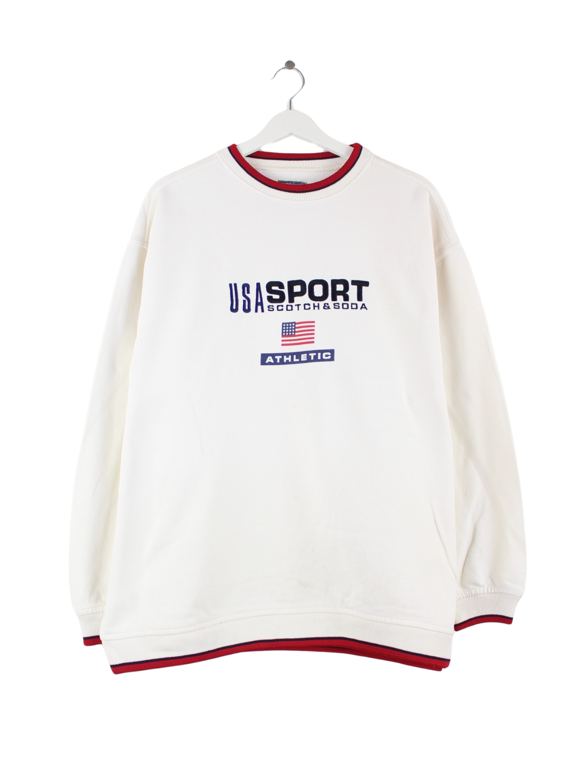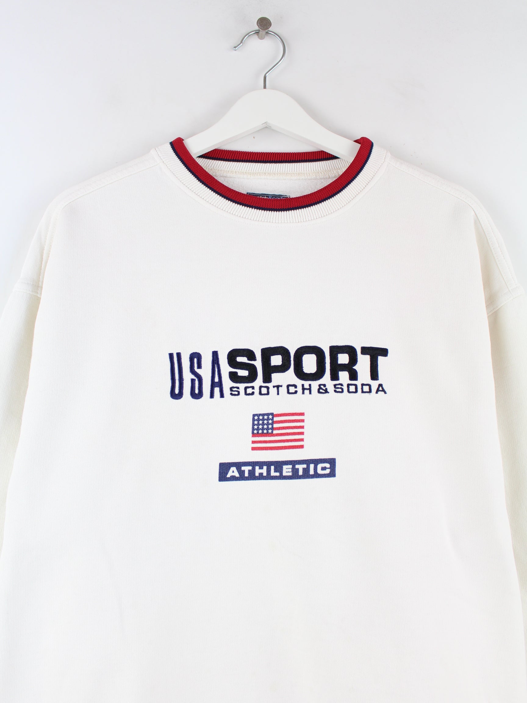 Vintage 90s USA Sport Embroidered Sweater Weiß XL