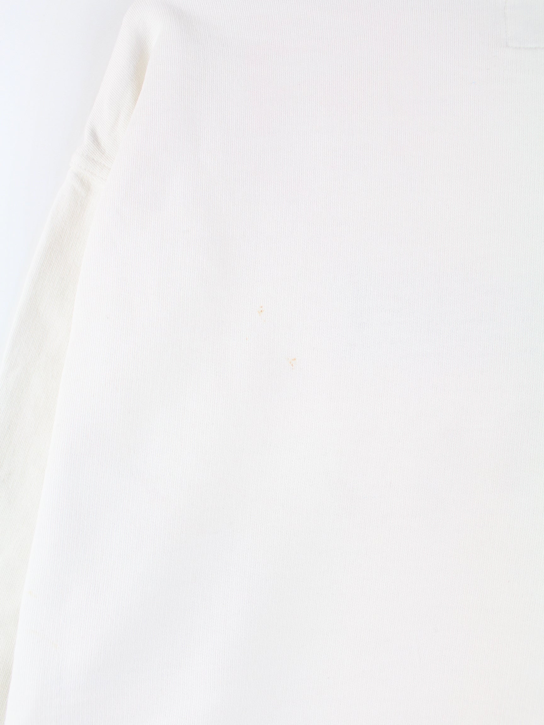 Weißer Vintage Sweater mit Stick aus den 90'ern in Größe XL. Er ist aus einer Baumwollmischung angefertigt und in gutem Zustand bei uns zu bekommen.