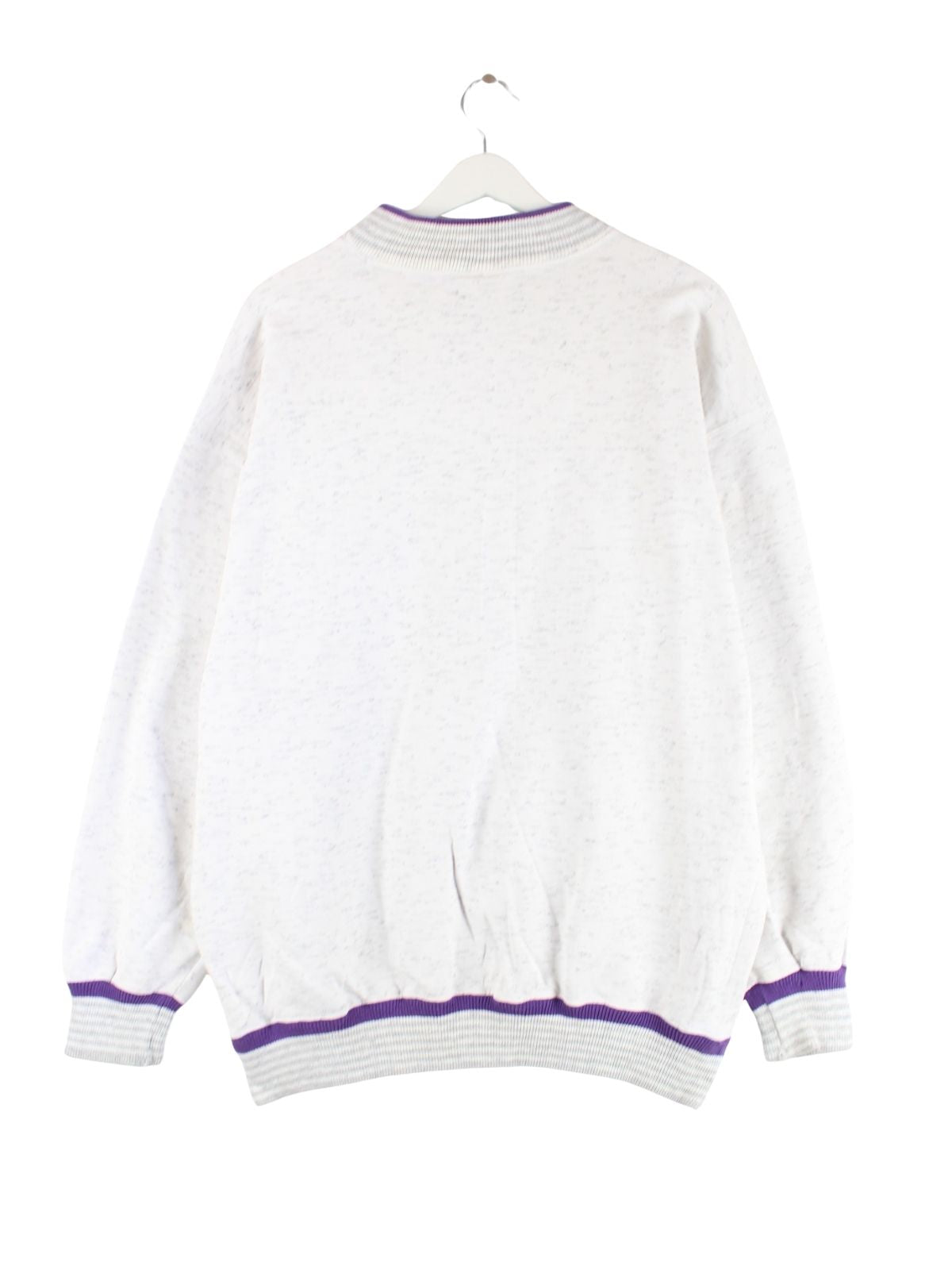 Grauer Vintage Sweater aus den 90'ern in Größe XL. Er ist aus einer Baumwollmischung gefertigt und in sehr gutem Zustand im Bestand.