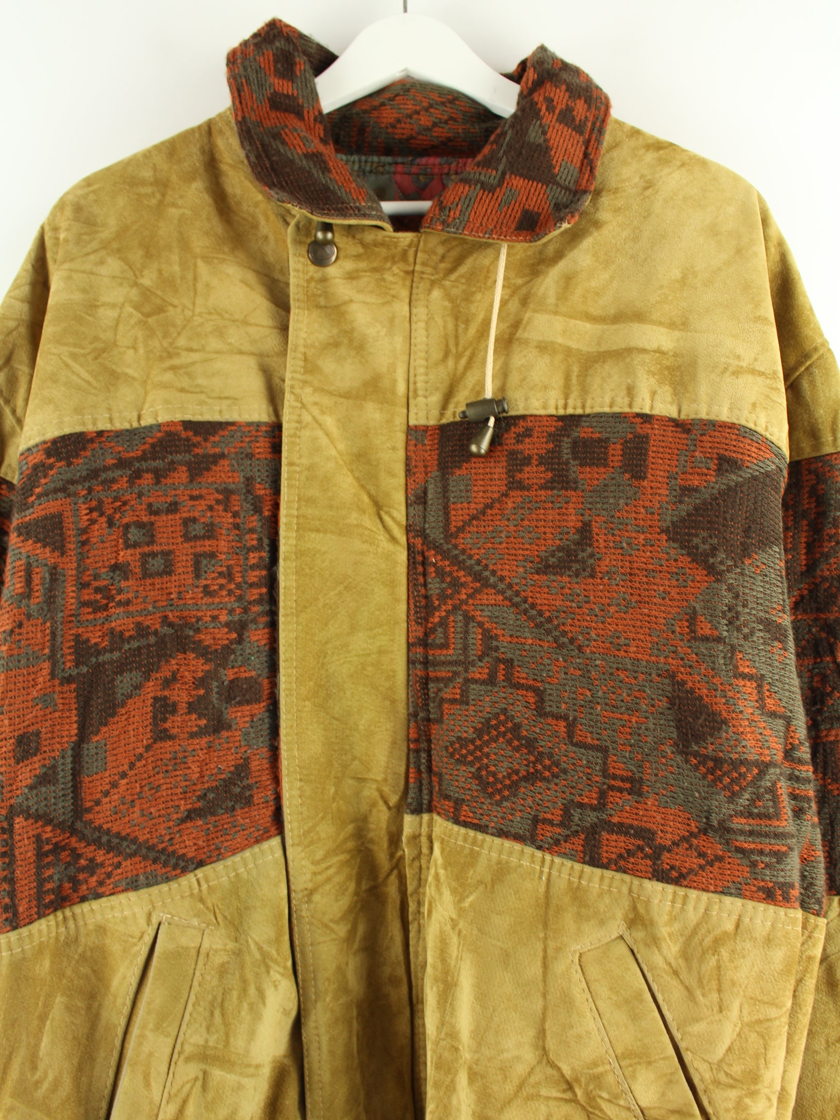 Vintage 90s Vintage Aztek Suede Bomber Jacke Beige XXL