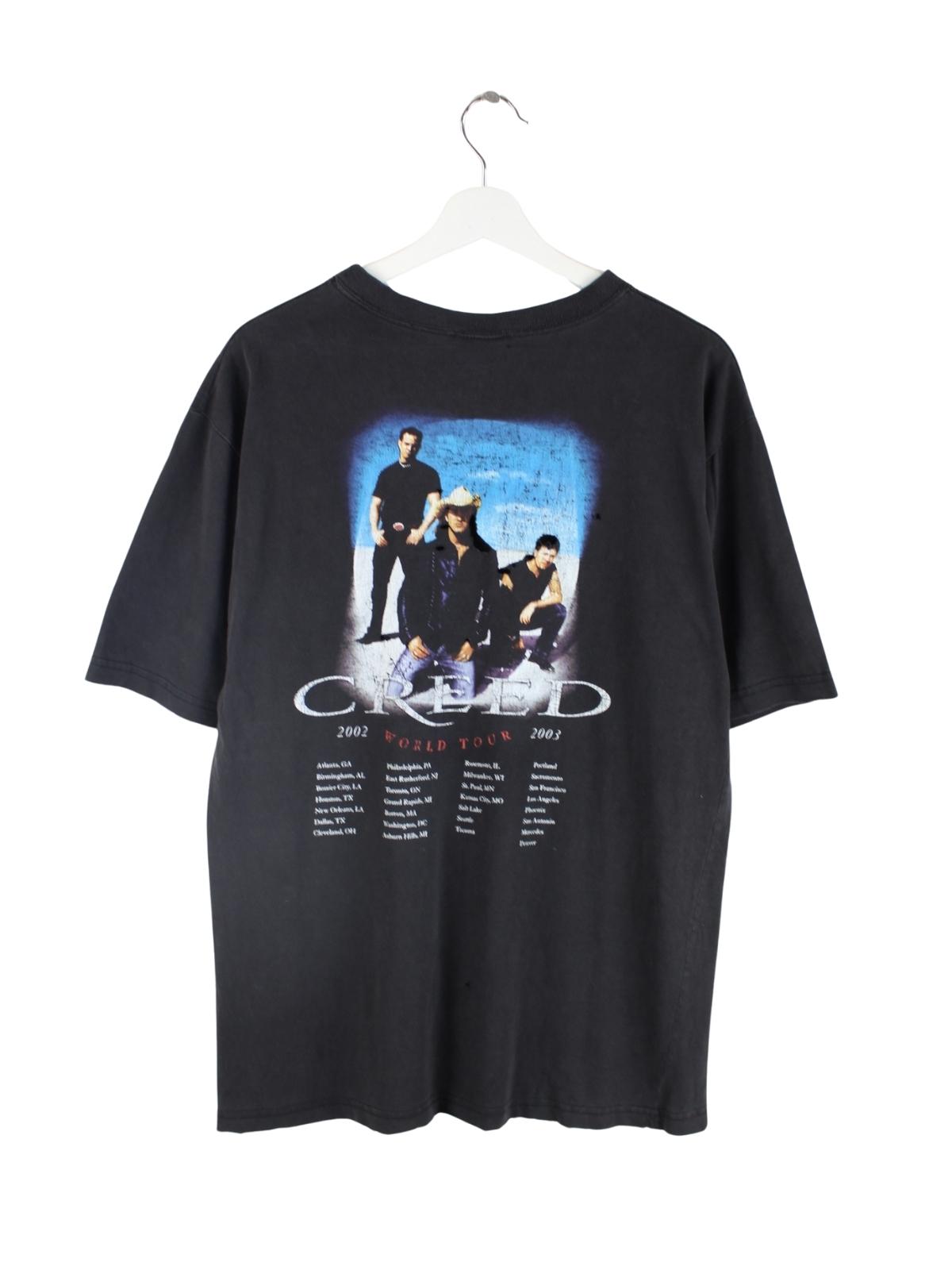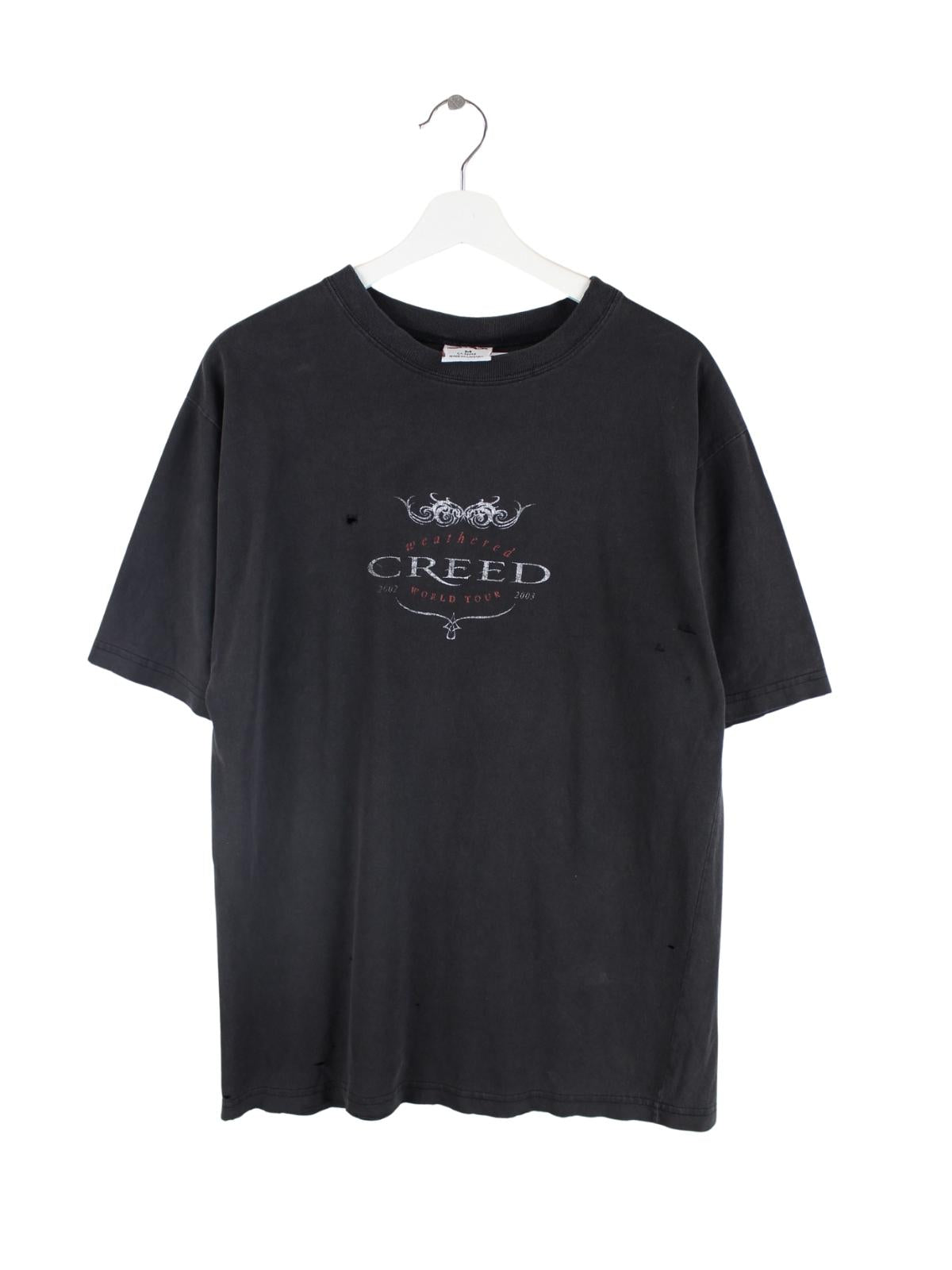 Vintage 90s Vintage Distressed Creed World Tour Band T-Shirt Schwarz M