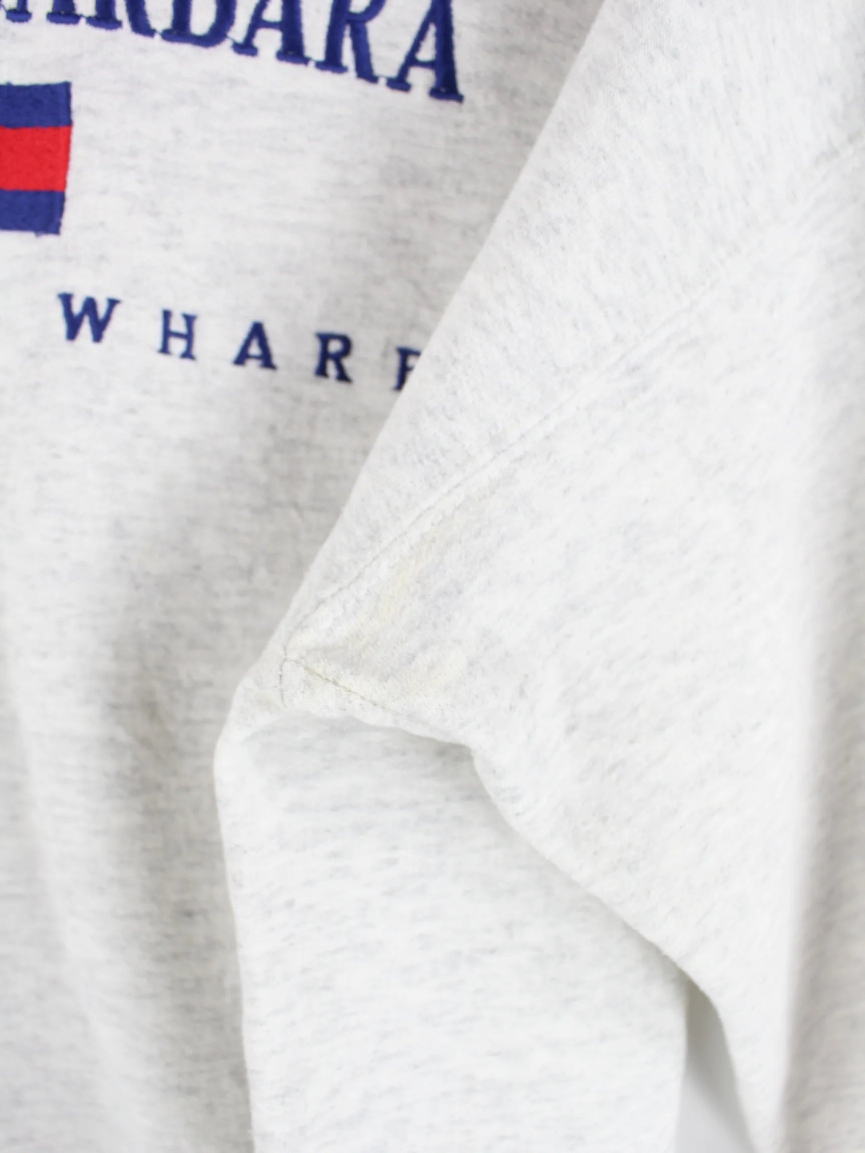 Grauer Tommy Hilfiger Sweater aus den 90'ern in Größe -. Er ist aus einer Baumwollmischung gefertigt und in gutem Zustand zu haben.