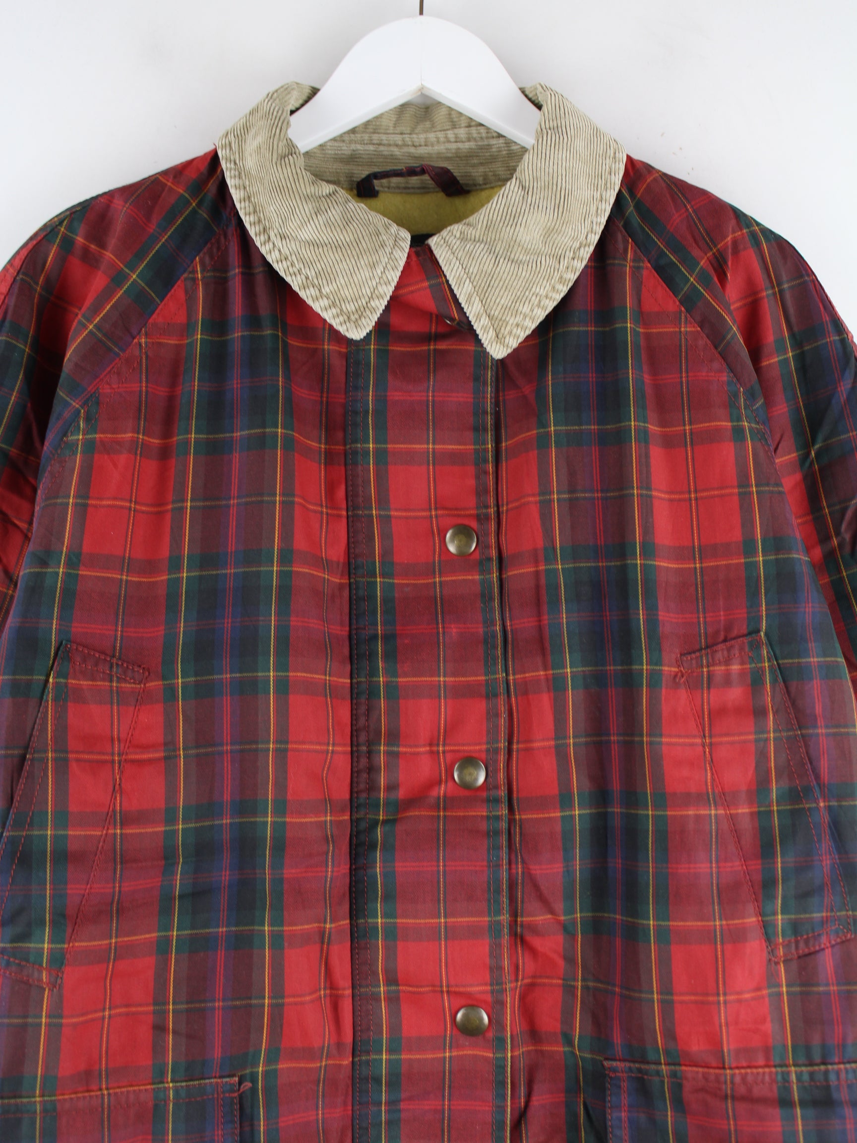 Vintage Leichte Jacke in Größe M aus den 90'ern. Sie ist aus einer Baumwollmischung gefertigt und in Rot bei uns zu bekommen.