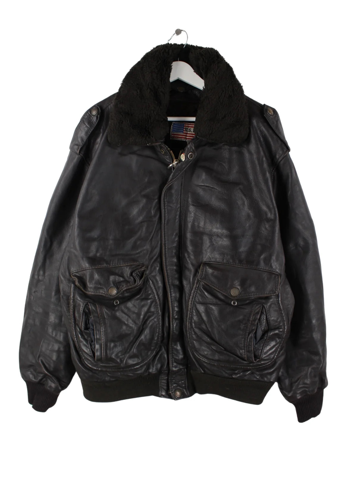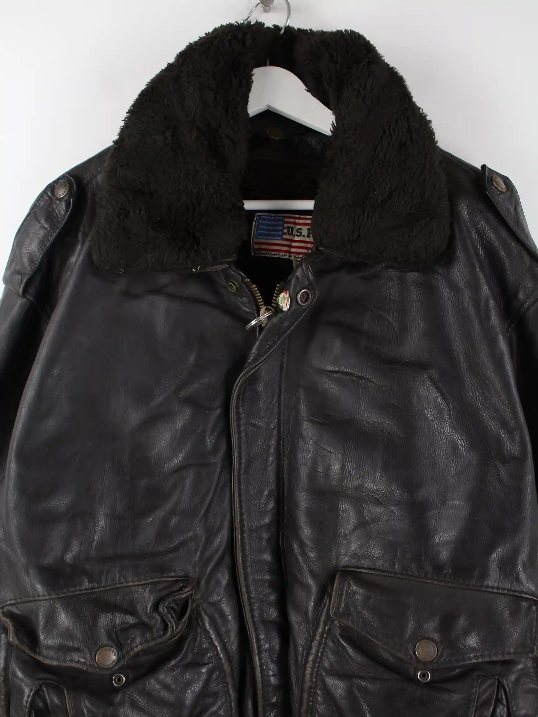 Vintage 90s Vintage US Force Leder Bomber Jacke Schwarz XXL