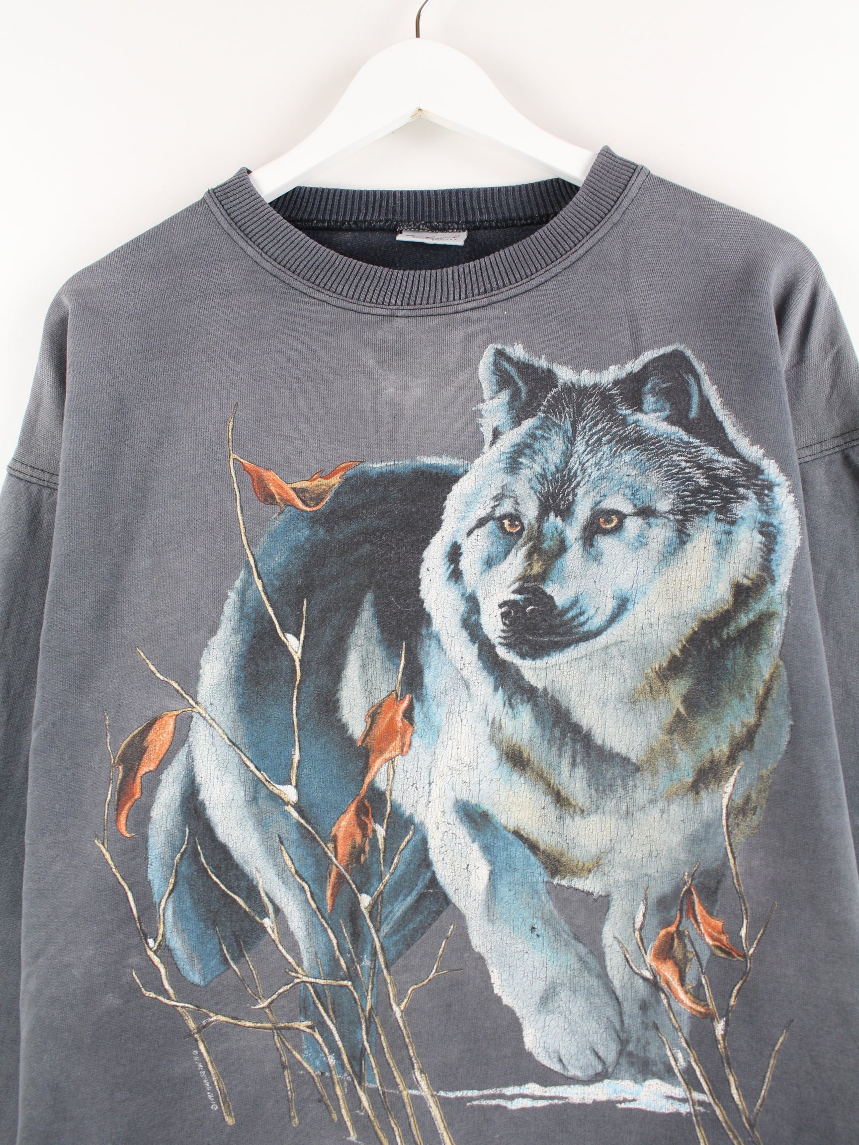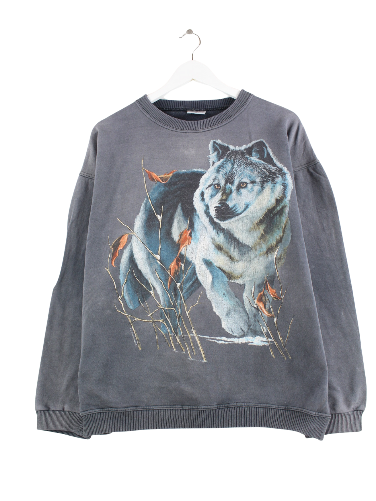 Vintage 90s Vintage Wolf Print Sweater Grau L