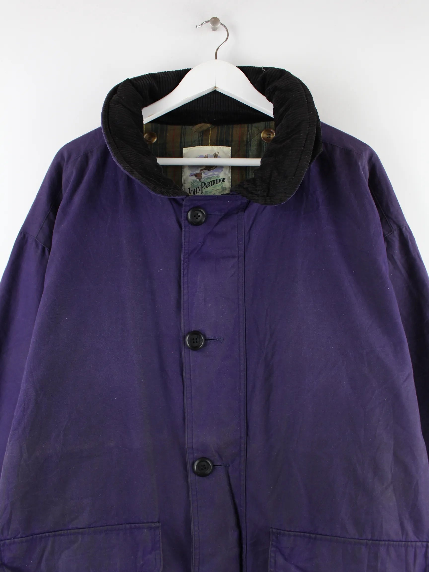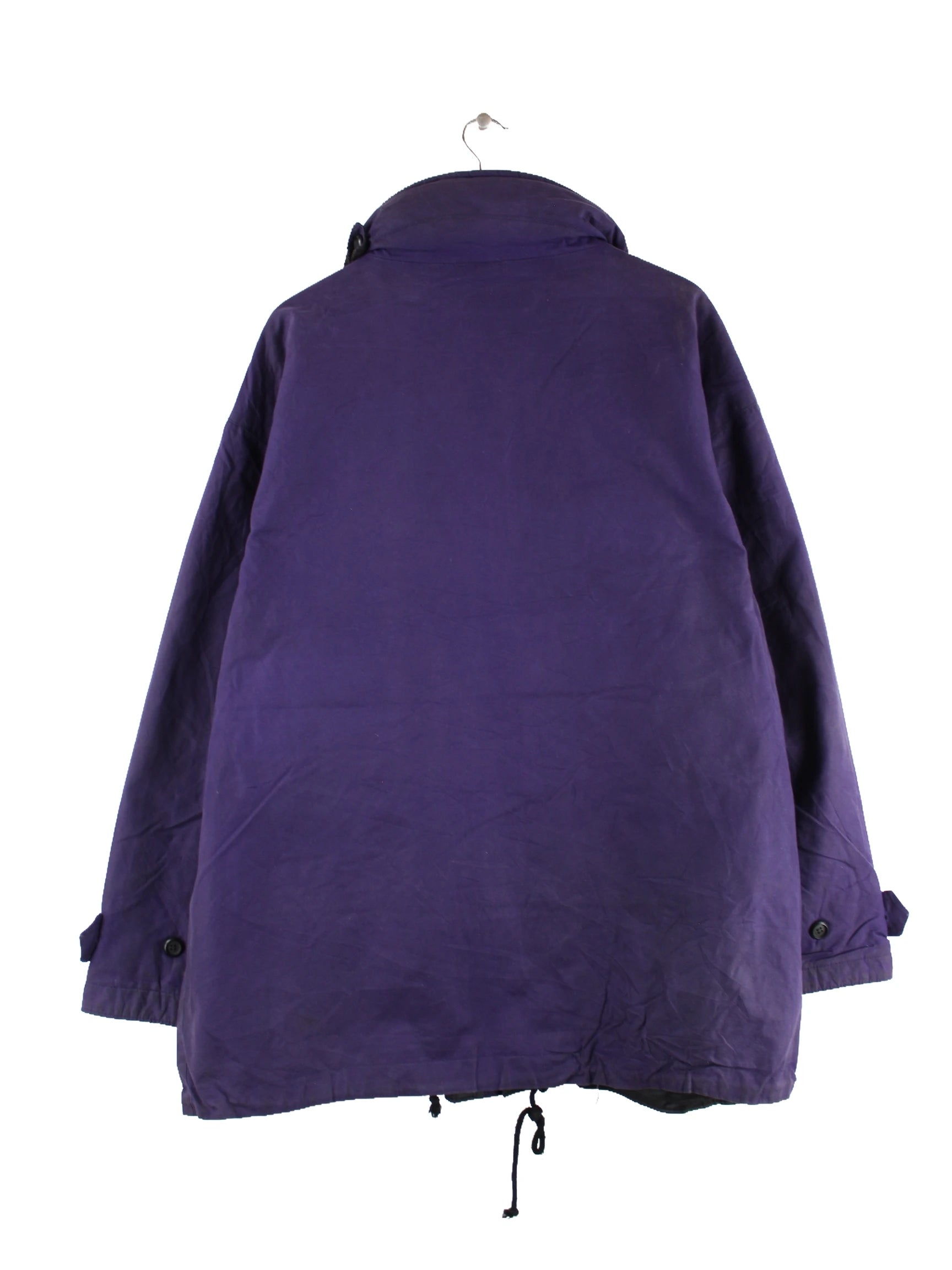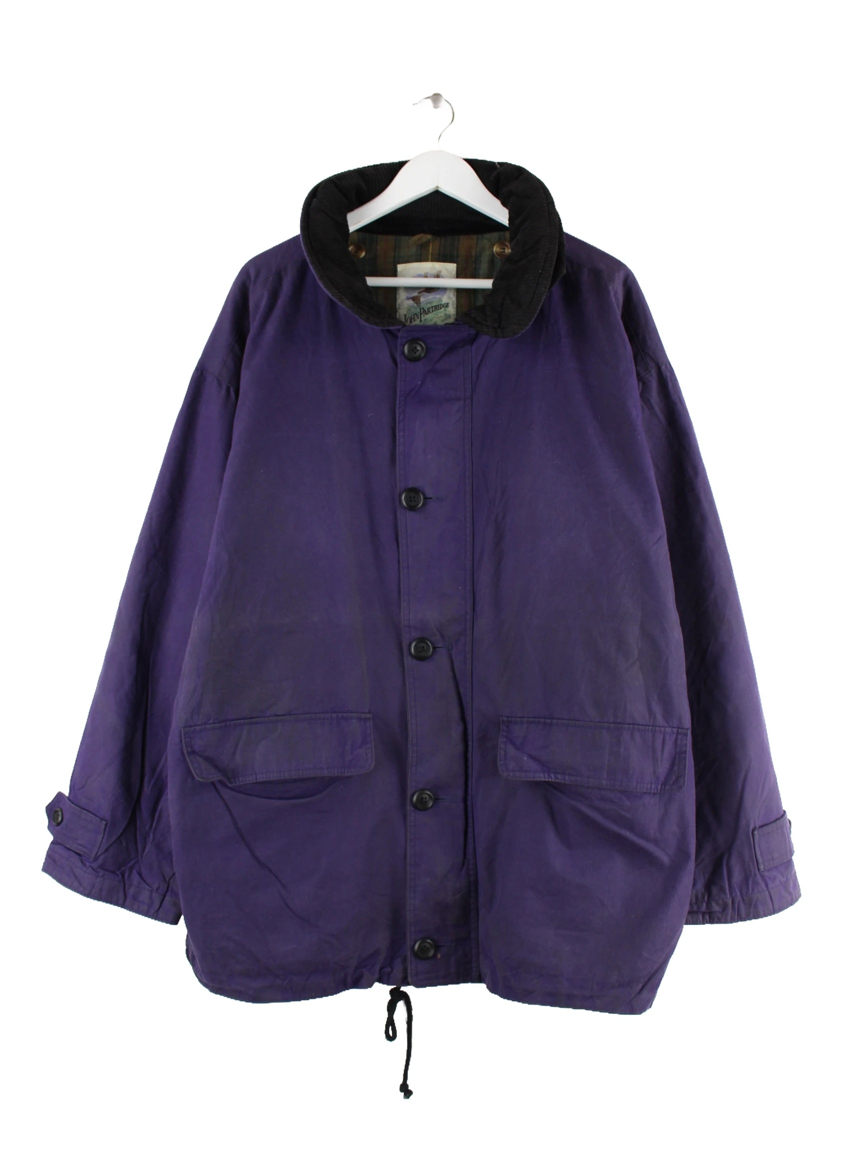 Vintage Jacke in Größe L aus den 90'ern. Sie ist aus Baumwolle gefertigt und in Lila bei uns zu bekommen.
