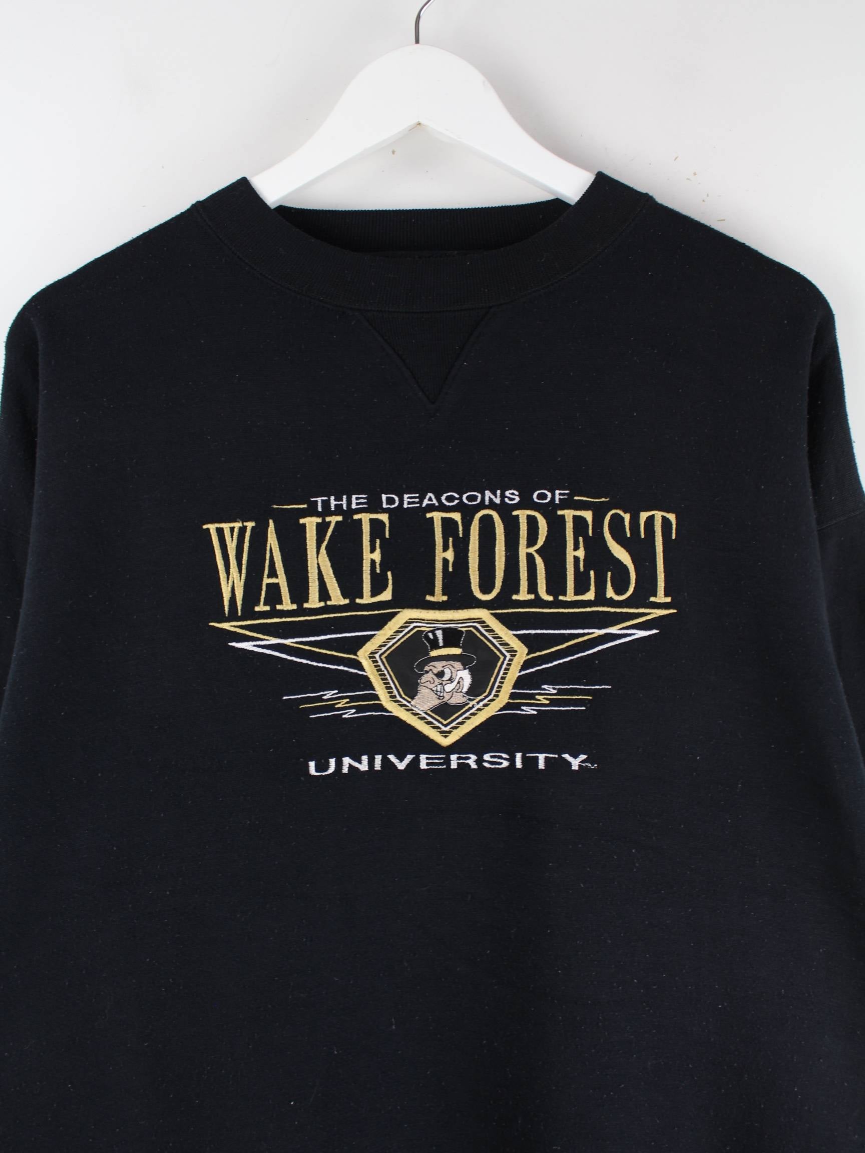 Vintage 90s Wake Forest Embroidered Sweater Schwarz XXL