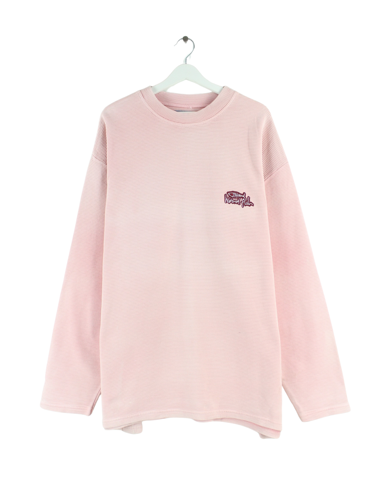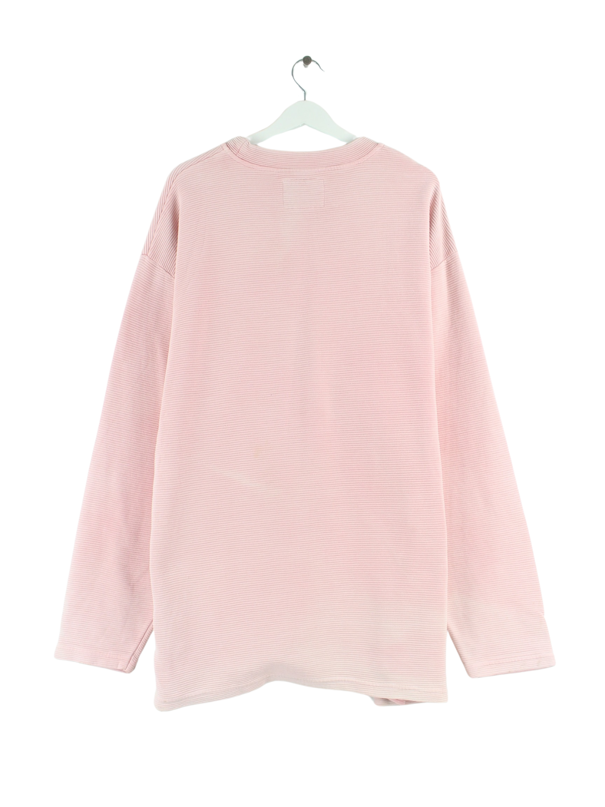 Vintage Sweater mit Stickereien in Größe XXL aus den 90'ern. Er ist aus einer Baumwollmischung hergestellt und in Rosa bei uns zu bekommen.