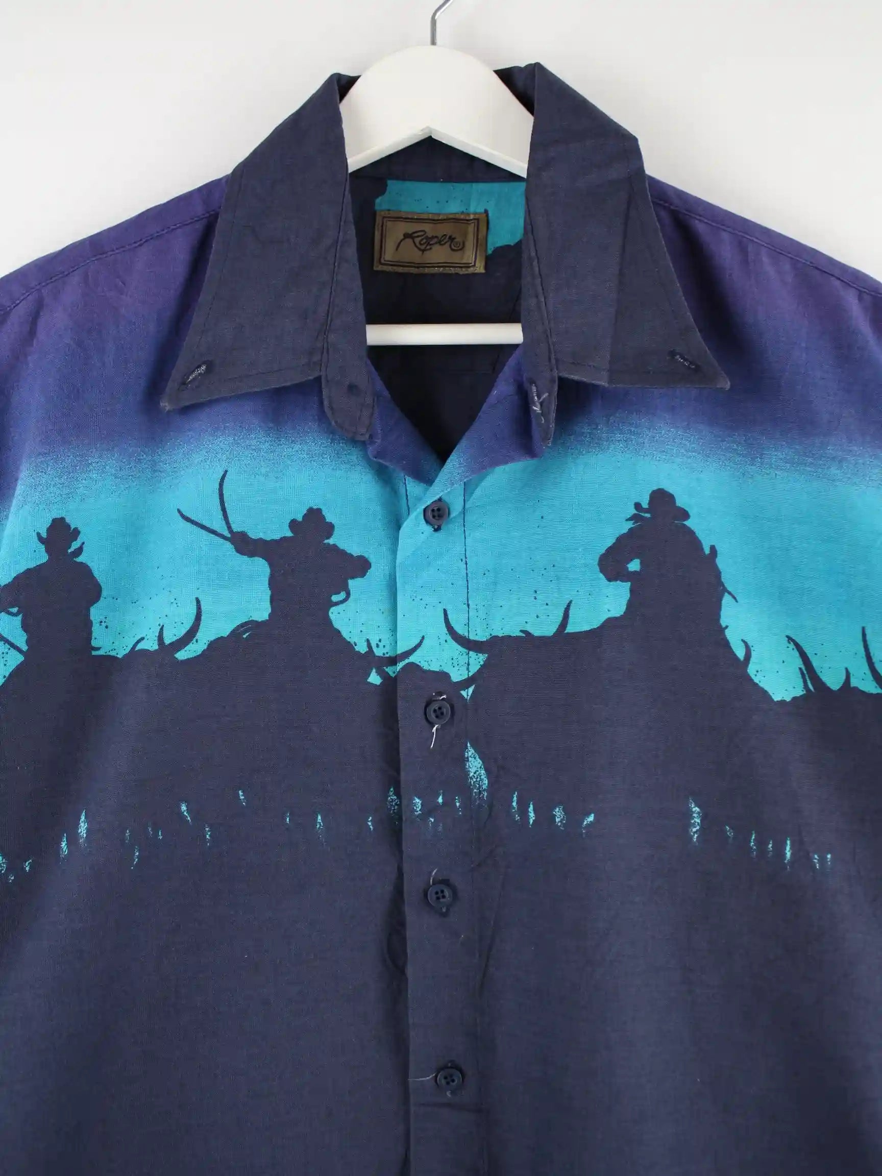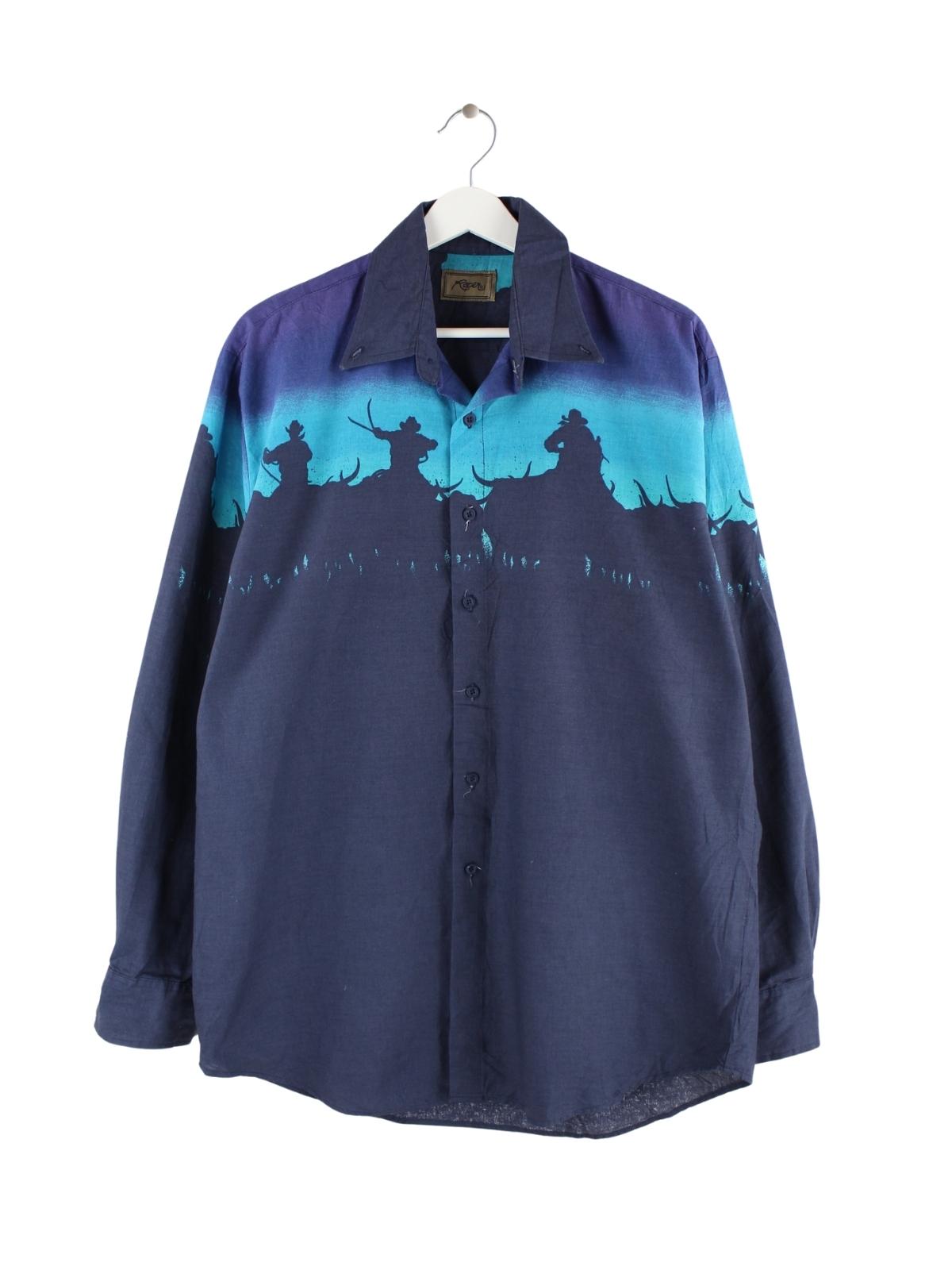 Vintage Freizeit Hemd in Größe L aus den 90'ern. Es ist aus Baumwolle gemacht und in Blau in Stock.
