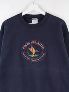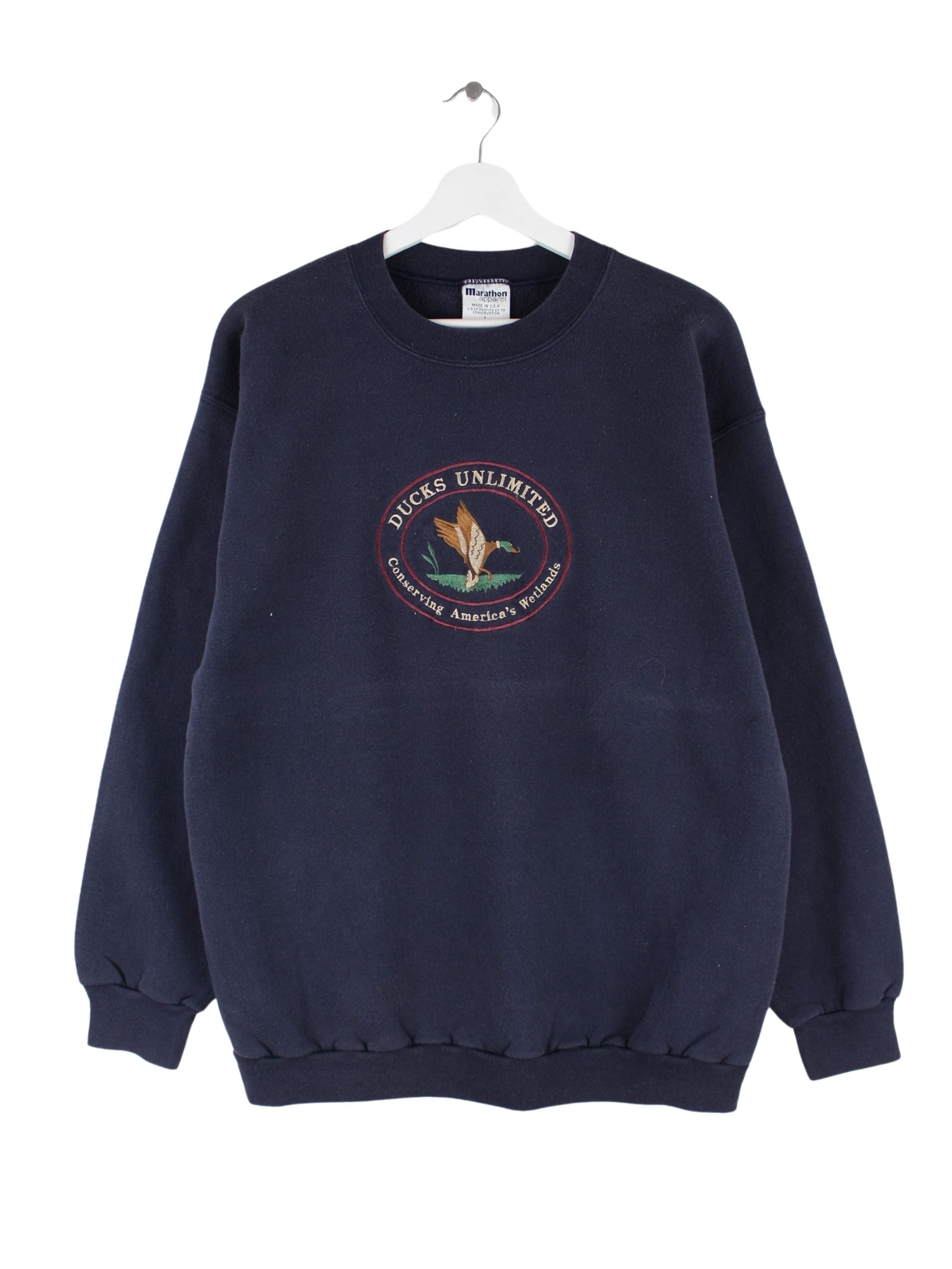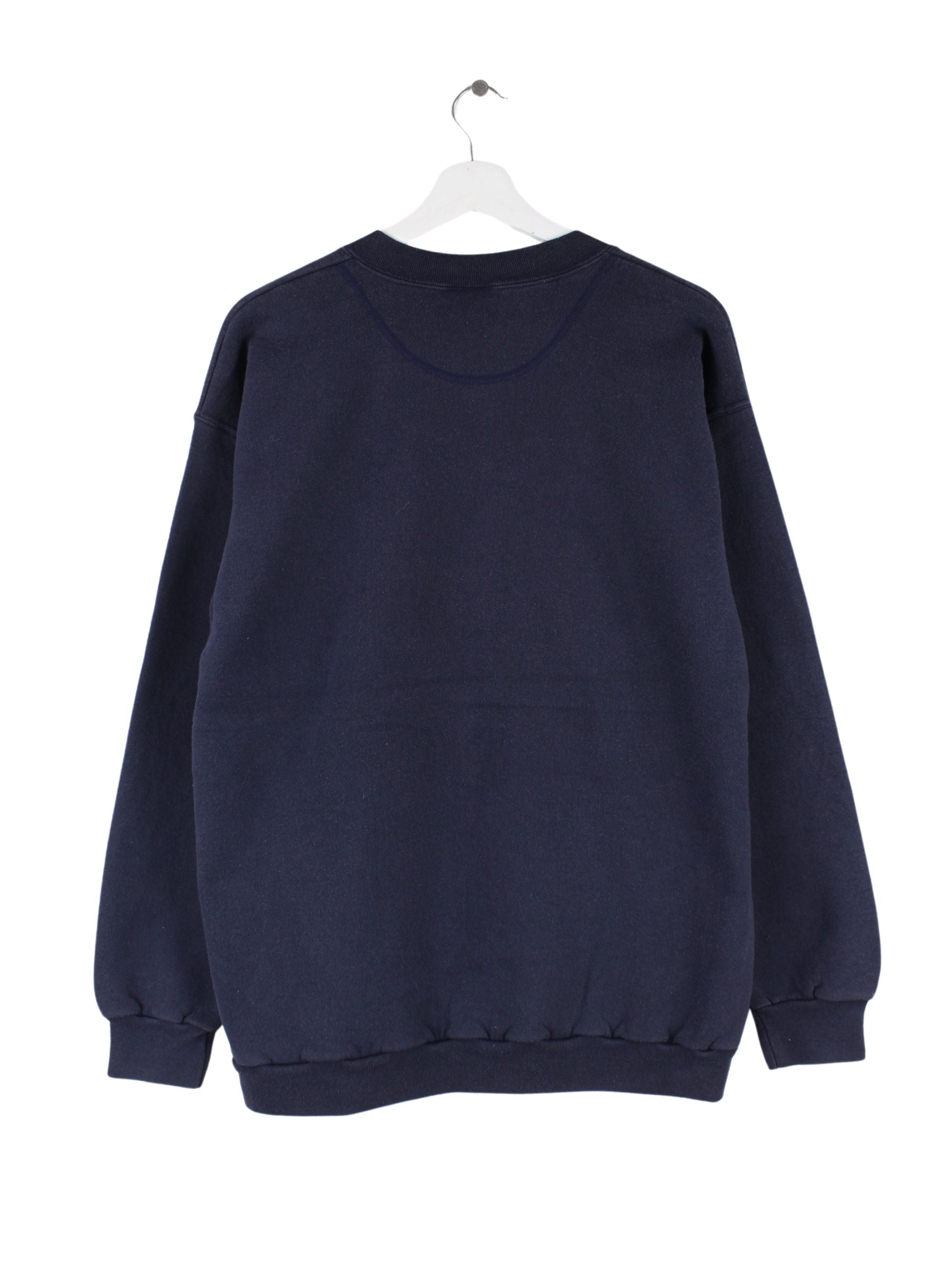 Blauer Vintage Sweater mit Stick aus den 90'ern in Größe L. Er ist aus einer Baumwollmischung angefertigt und in gutem Zustand in Stock.