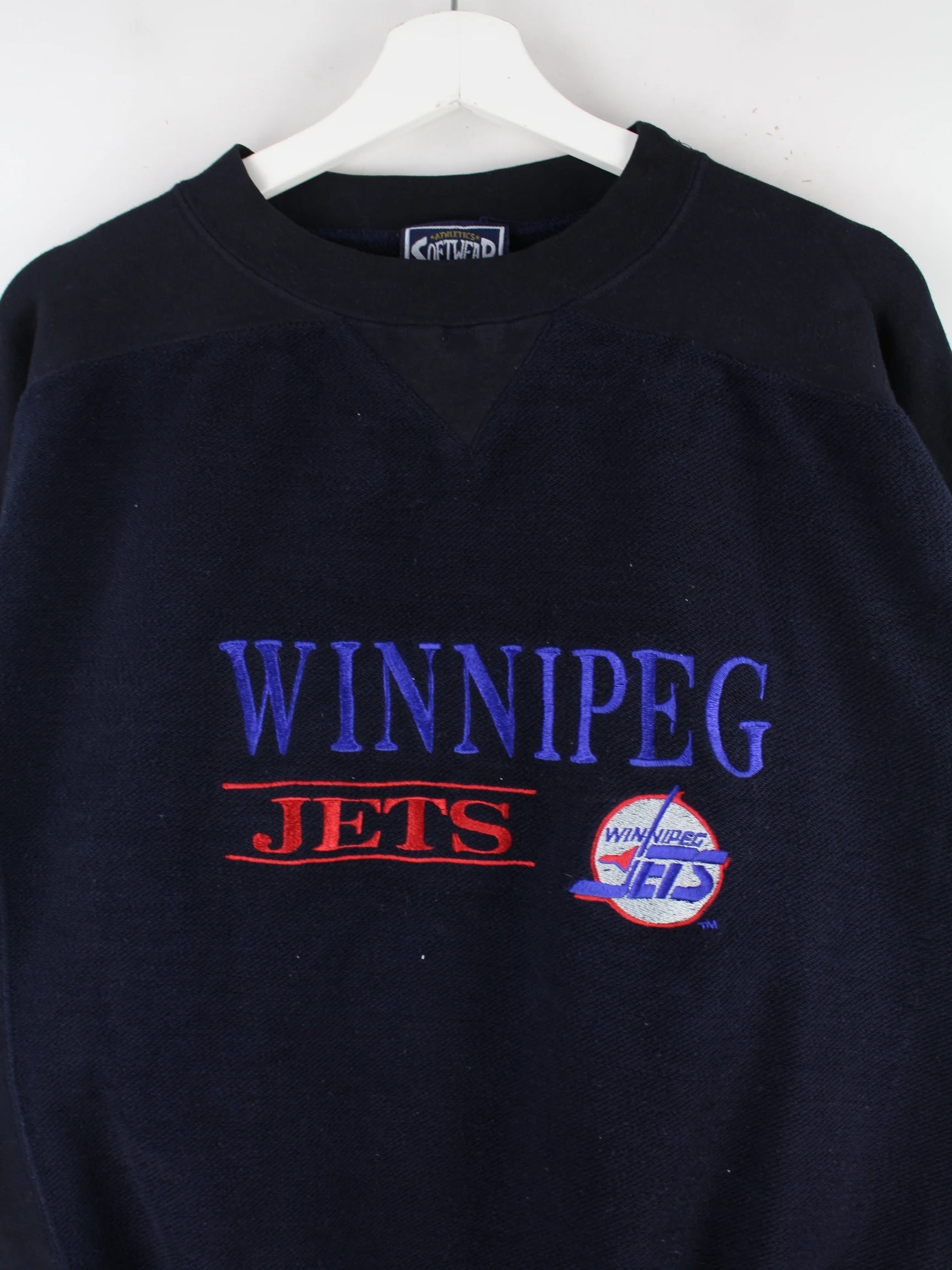 Vintage 90s Winnipeg Jets Embroidered Sweater Blau L