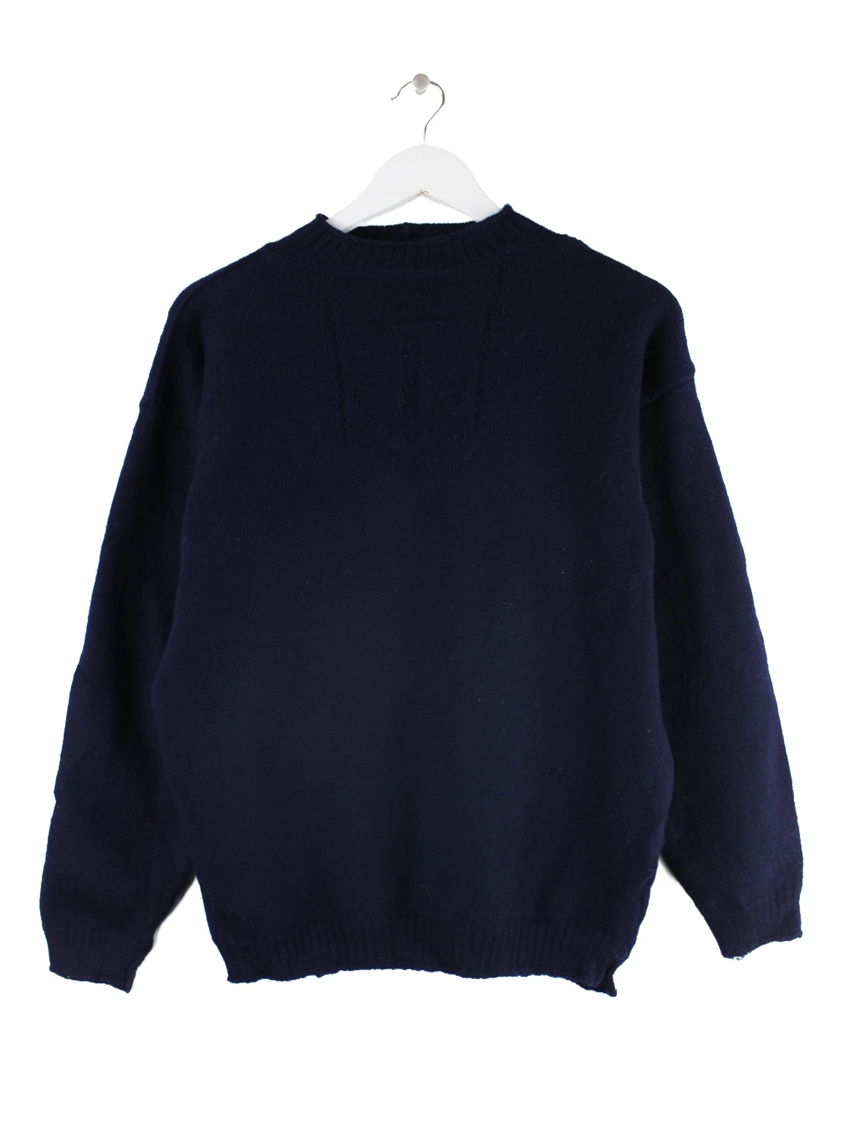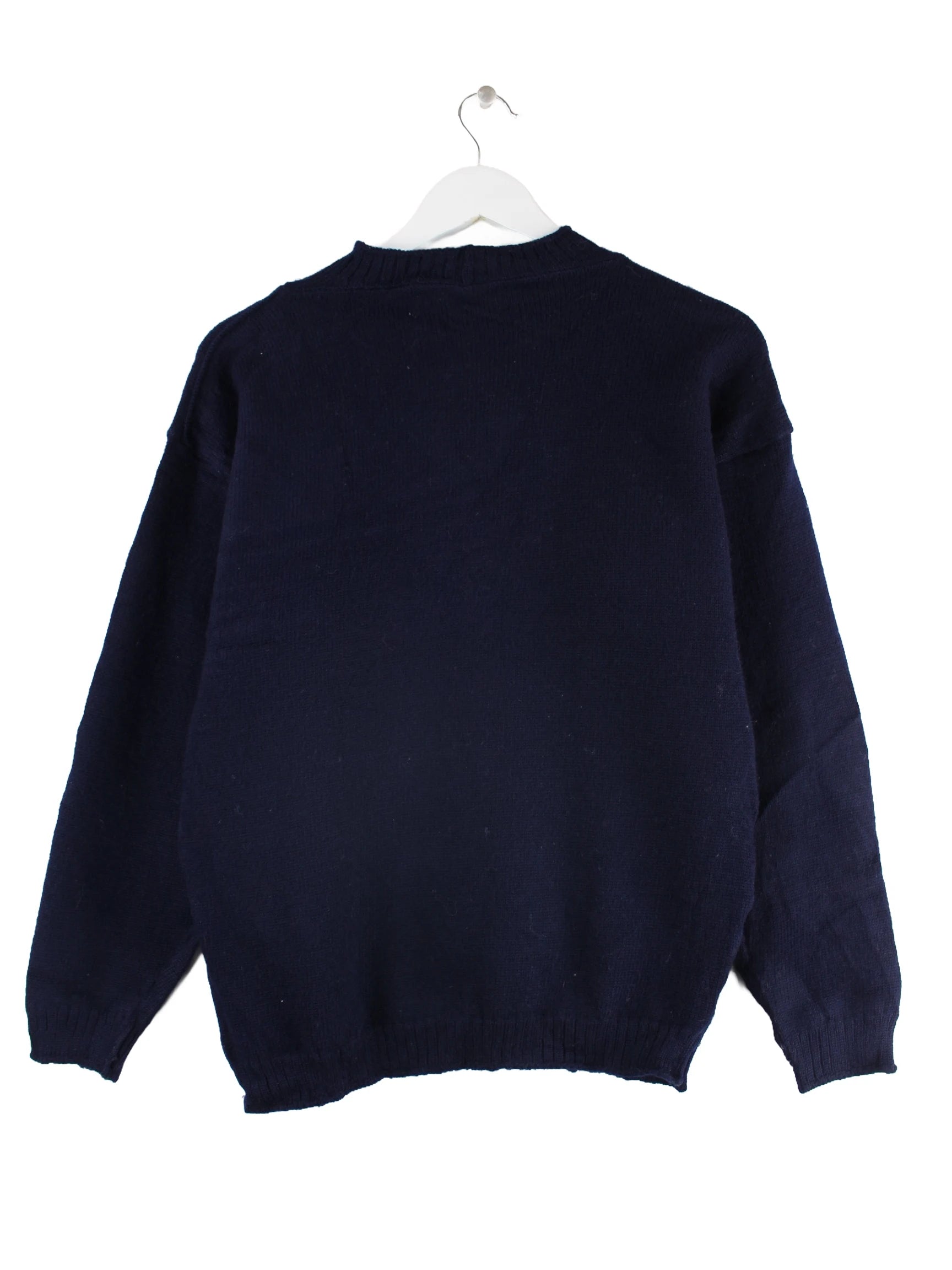 Blauer Vintage Pullover aus den 90'ern in Größe S. Er ist aus Wolle gefertigt und in sehr gutem Zustand im Bestand.