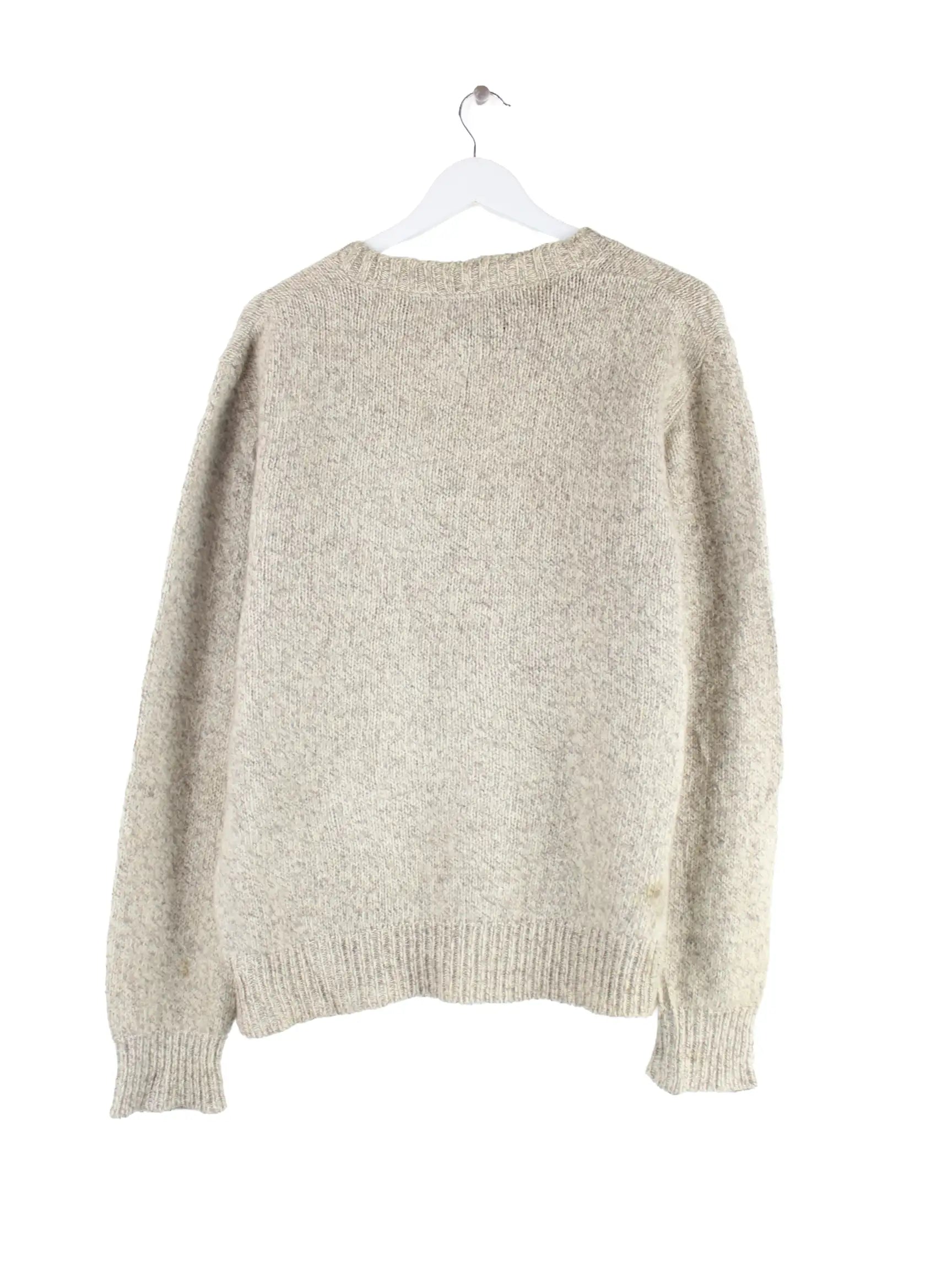 Vintage Pullover in Größe L aus den 90'ern. Er ist aus Wolle angefertigt und in Grau in Stock.