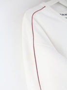 Weißer Vintage Sweater mit gesticktem Logo in Größe M. Er ist aus einer Baumwollmischung produziert. Den Zustand würden wir als 'In Ordnung' bezeichnen (vergl. Bilder).
