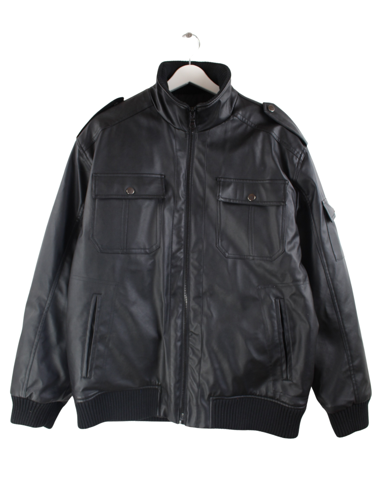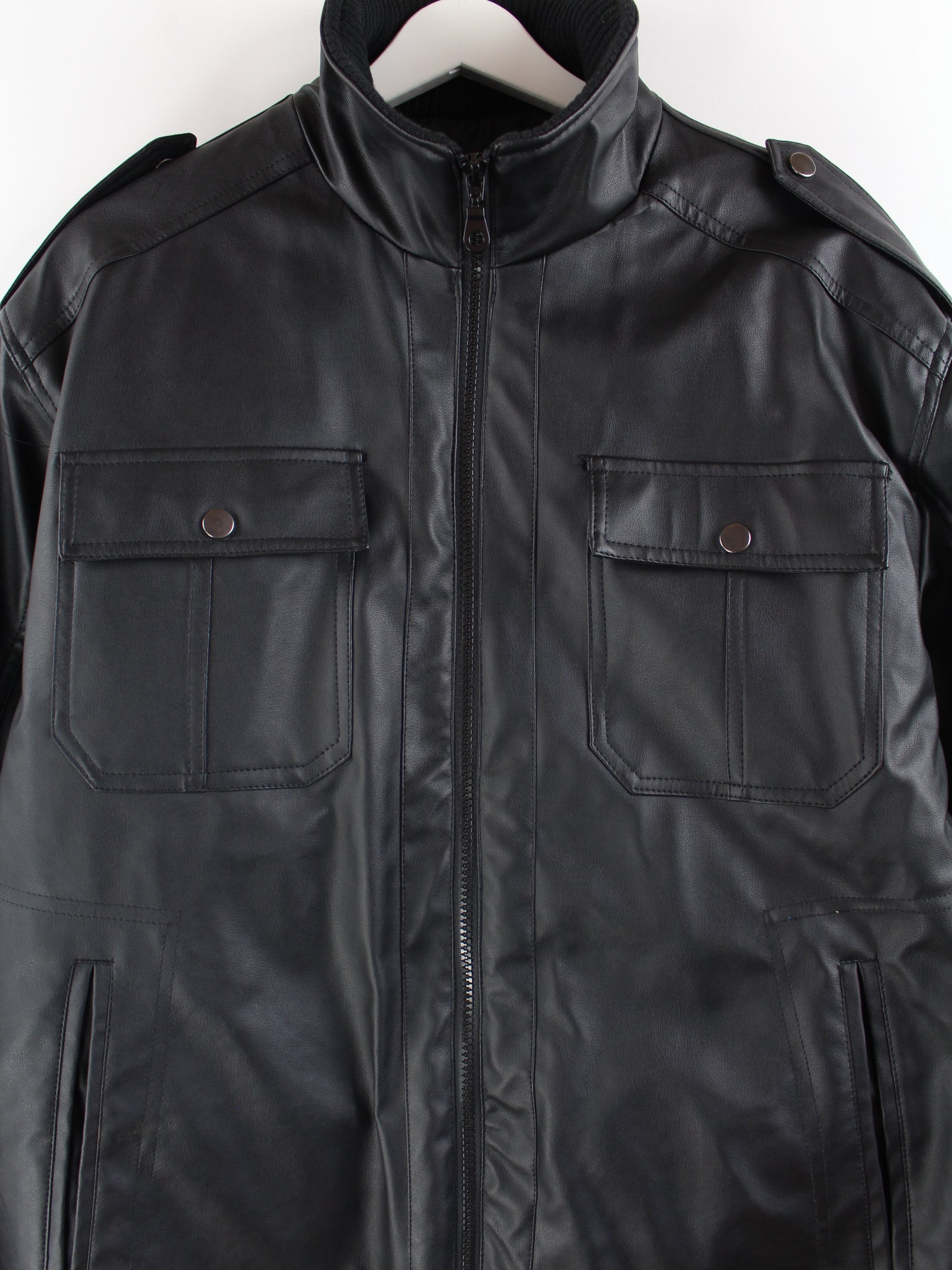 Vintage Atlas Jacke in Lederoptik in Größe L. Sie ist aus Synthetik produziert und in Schwarz im Angebot.